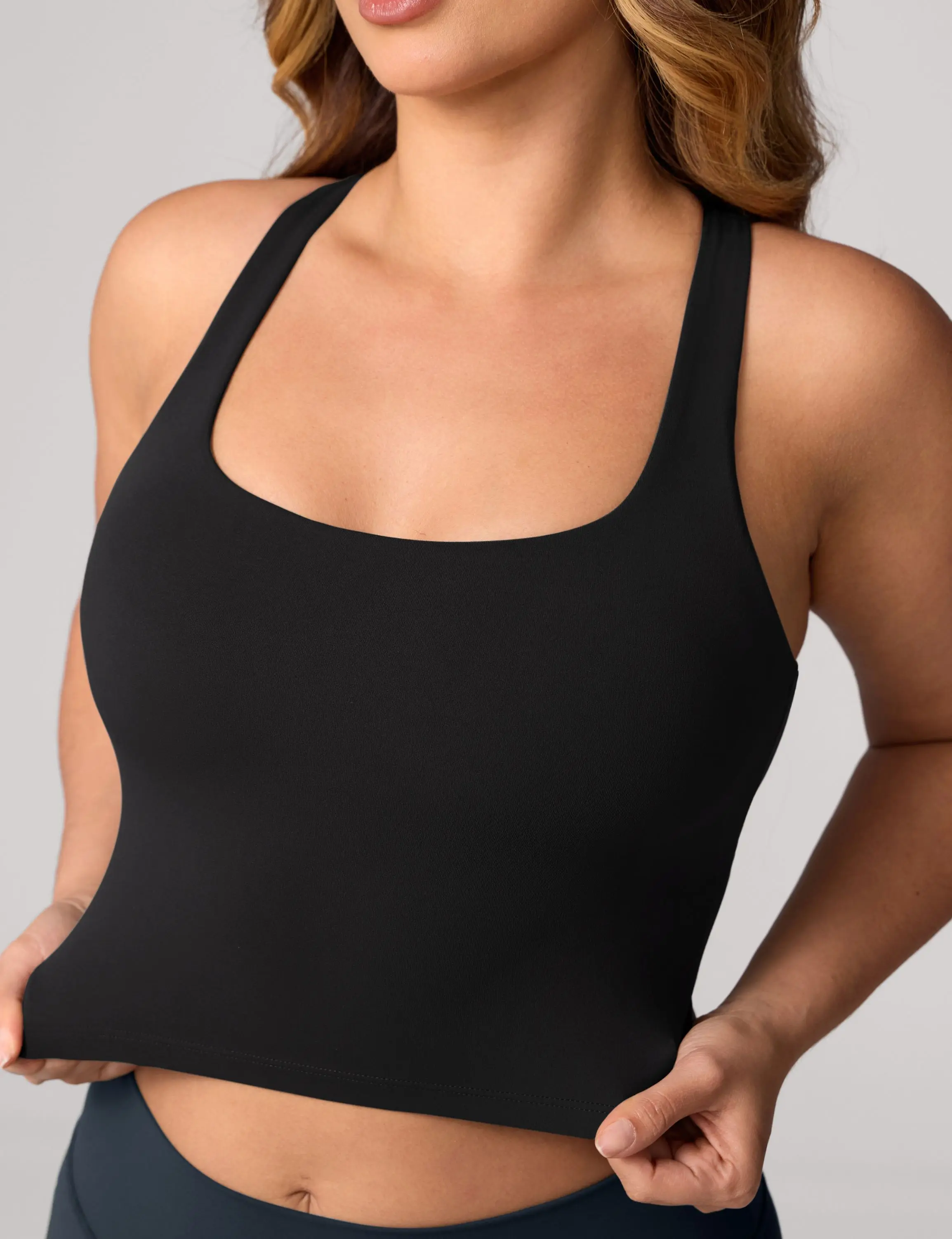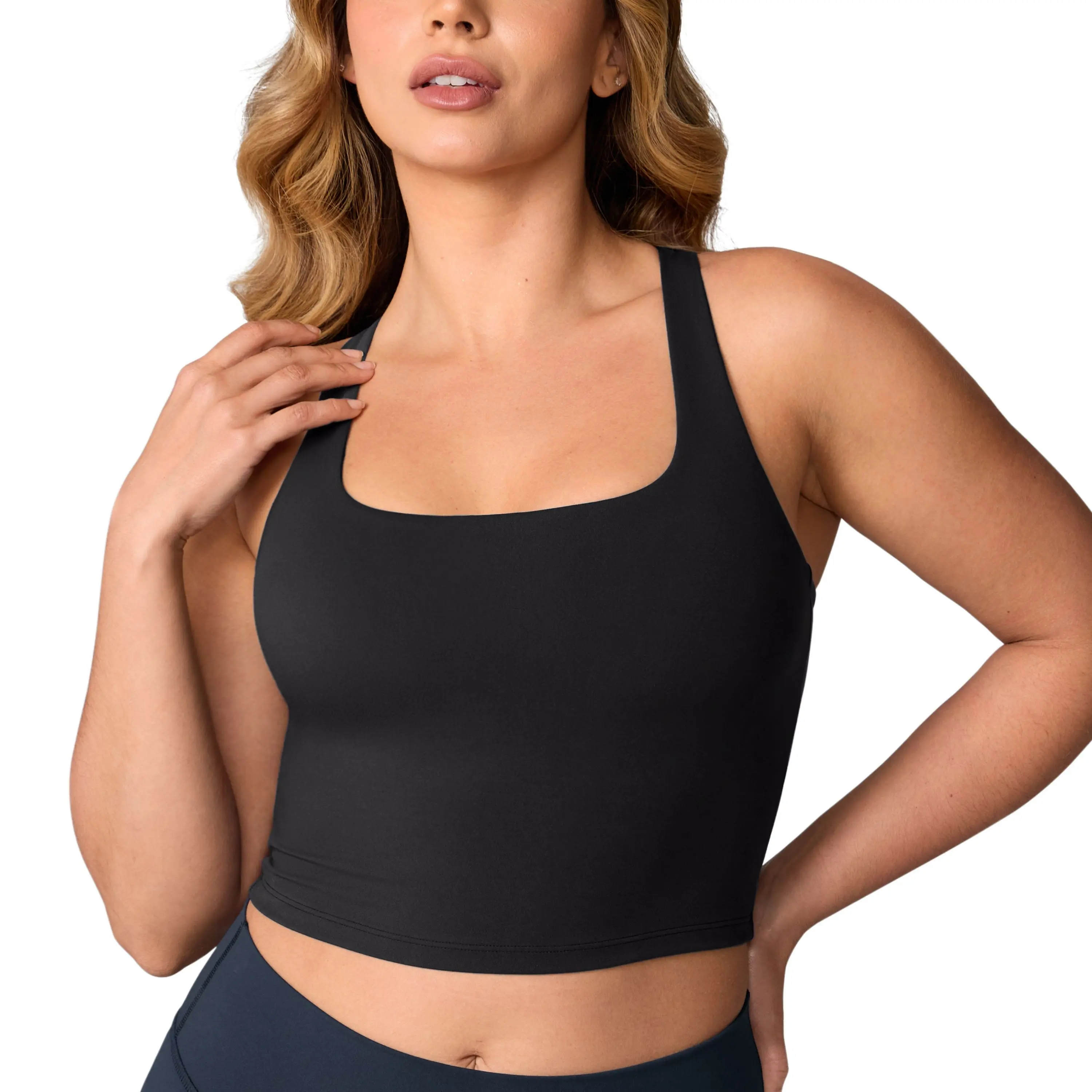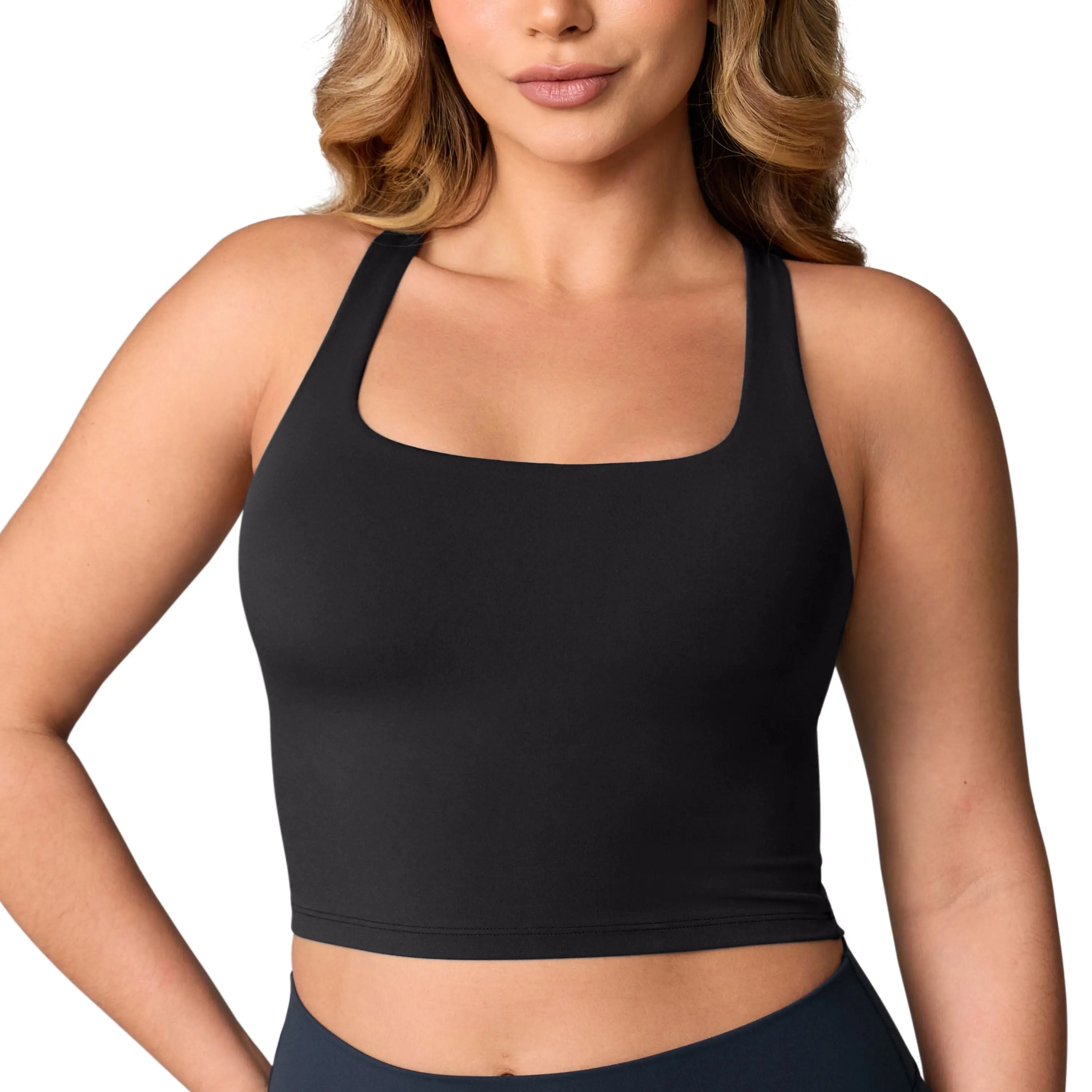 ·Cropped length, hits above the belly button, ideal for workout or going out.