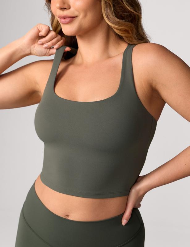 ·Square neckline and wide straps create a sleek look with secure coverage.