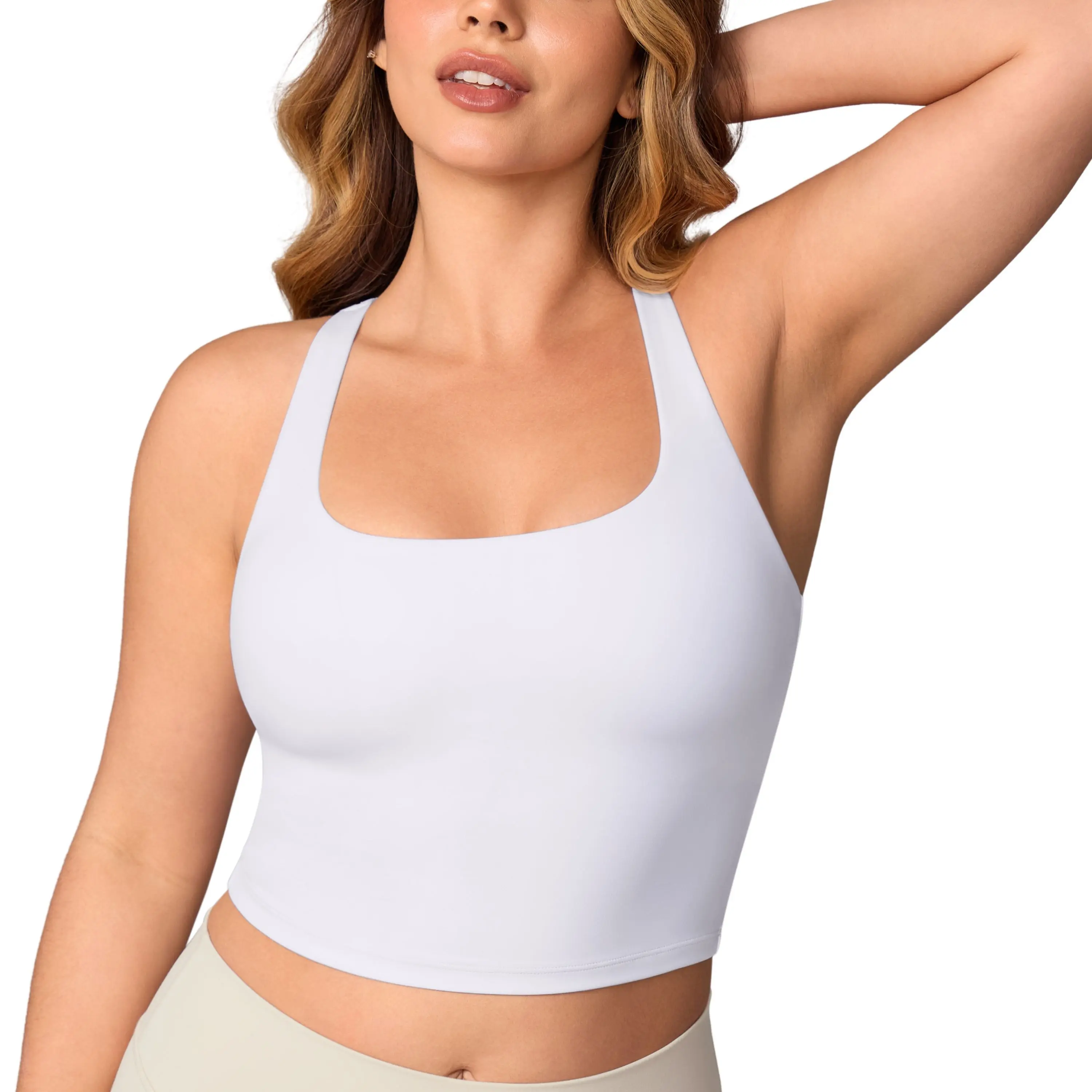 ·Racerback with adjustable straps provide flexible fit and steady support.