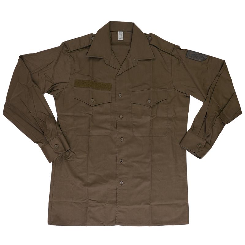 A comfortable and durable lightweight field shirt made for the Austrian army. These shirts are similar to the KAZ 75 field shirt, but come in a lighter weight fabric with smaller buttons. They feature two button-flap pockets and button-adjustable cuffs.