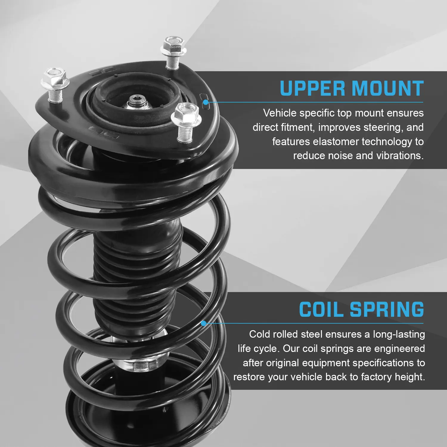 Fast, bolt-on replacement without special tools. Vehicle-specific fitment ensures accurate alignment and correct ride height. Meets or exceeds original equipment standards for factory-like damping and ride comfort. Made from premium-grade steel and corrosion-resistant materials, this assembly is built for long-term performance.