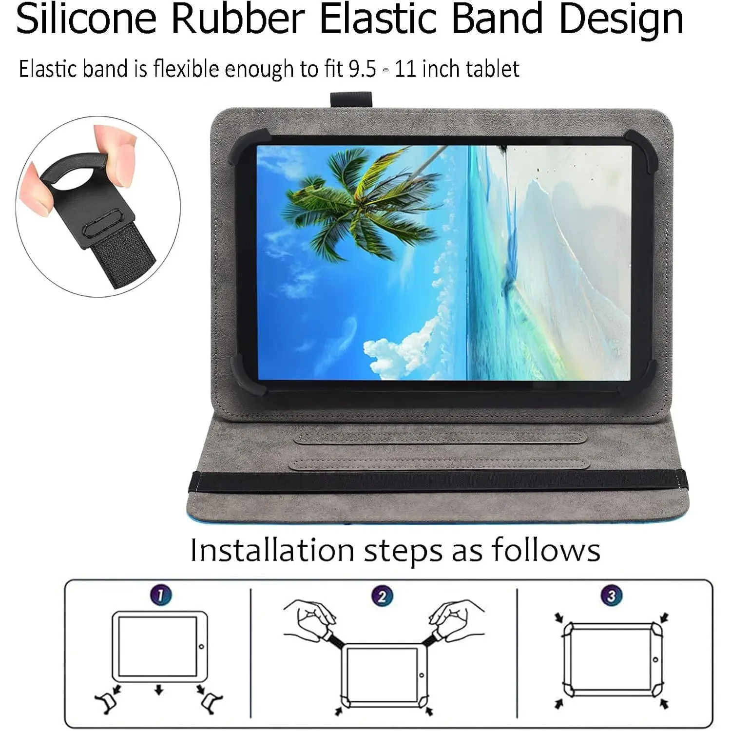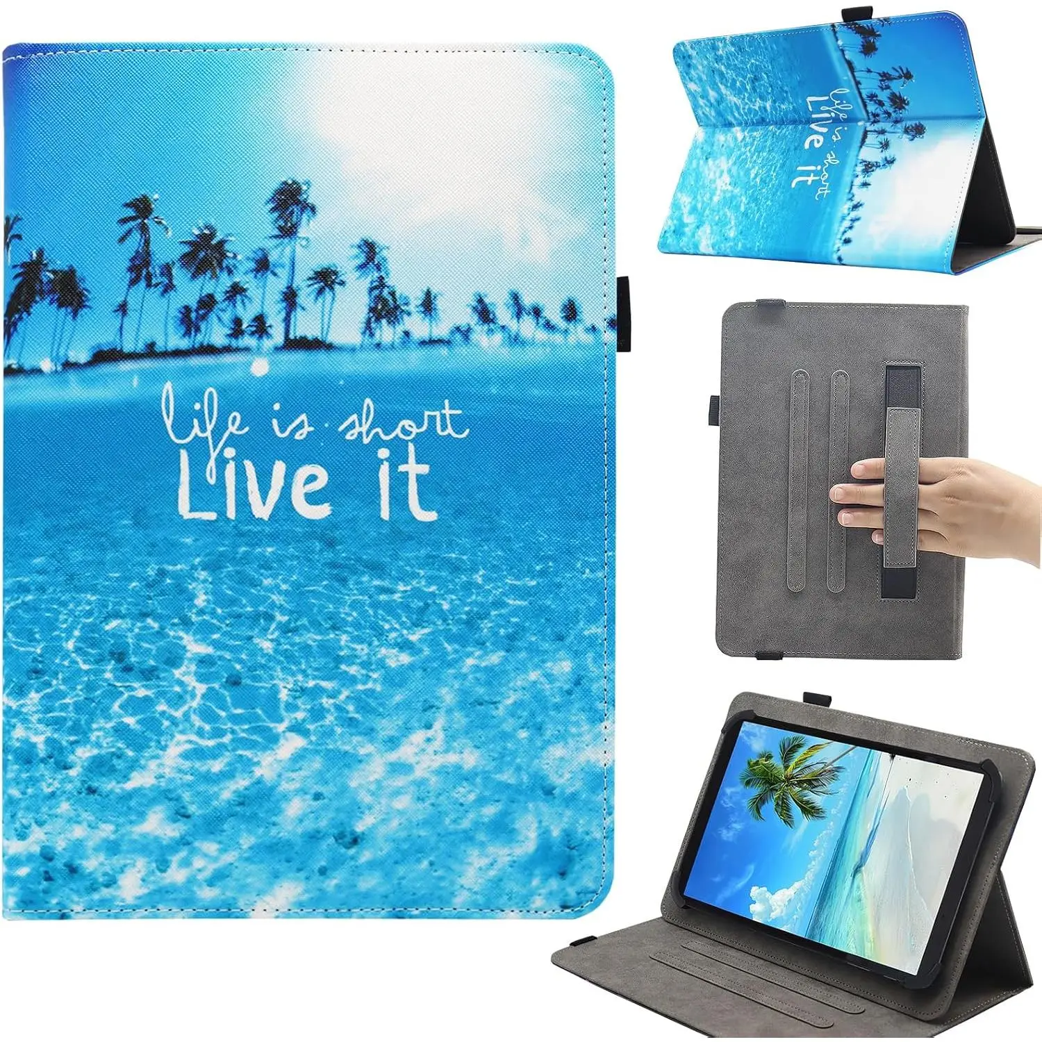 Tired of juggling your tablet without a proper case? This universal 9.5-11 inch tablet case is your new best friend. Whether you're binge-watching your favorite shows or reading on the go, the multi-angle stand lets you find the perfect view without fuss. The strong elastic band keeps your device snug and safe, while the soft microfiber lining guards against scratches and bumps. Plus, the handy hand strap means you can hold your tablet comfortably with one hand—great for those busy days out or relaxing at the beach. There's even a built-in stylus loop to keep your pen handy (stylus not included). Made from durable PU leather, this case offers full-body protection and comes in a variety of eye-catching colors like Beach and Butterfly Flower. Inside the box, you'll get the case itself—ready to slip your tablet in and go. So why wait? Protect your tablet in style and enjoy hands-free convenience wherever life takes you!
