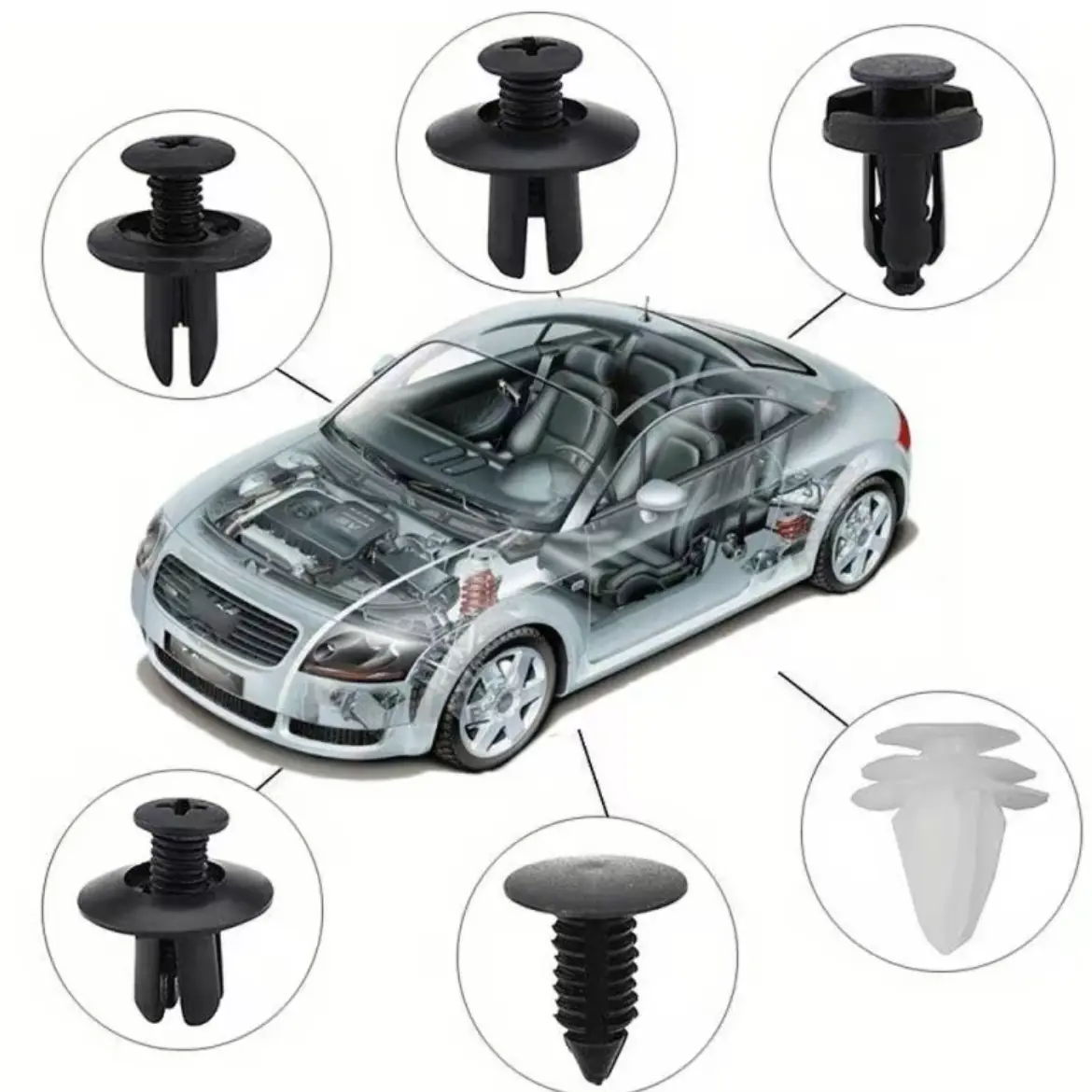 Elevate your car's functionality with this durable plastic fastener kit. It features 6 stylish designs for secure and easy installation. Perfect for automotive exterior accessories, it offers wide application possibilities. Ideal for vehicle replacement and car interior kits, this essential accessory is a must-have for any car owner. Enhance your car's look and utility with this versatile kit.