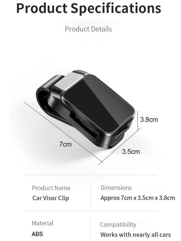 Elevate your car visor with this 3-in-1 Sunglasses Holder & Receipt Organizer. It's designed to keep your essentials organized while driving. The clip measures 7 cm × 3.5 cm × 3.8 cm, fitting perfectly into any car visor. Ideal for sunglasses and receipts, it ensures convenience without bulk.
