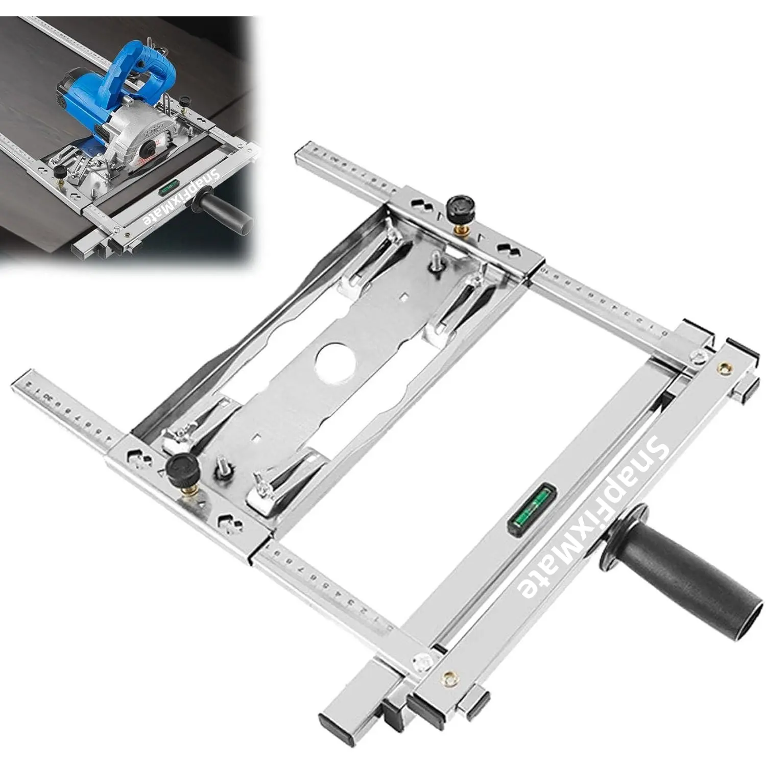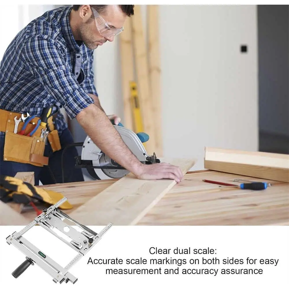 Feature: Stainless steel material, light, accurate, durable and efficient Quick operation, easy to use: flexible adjustment, convenient operation, improve work efficiency Bilateral scale, precise measurement: Bilateral high-precision scale, accurate to every millimeter Quick positioning, free adjustment: Hexagonal rotation positioning, the width of the cutting board can be adjusted freely from 2-60cm Adjustable angle and depth: bevel angle up to 45°, cutting depth up to 30mm Detail: ①Handle design: long-term work is not tired, easy to carry. ②Quick positioning: Quick positioning of the handle, fixed and stable, accurate blanking, not easy to wear ③The horizontal bubble design of the fuselage makes the cutting more accurate Packing package: 1* woodworking panel cutting tool Note: Not include marble machine