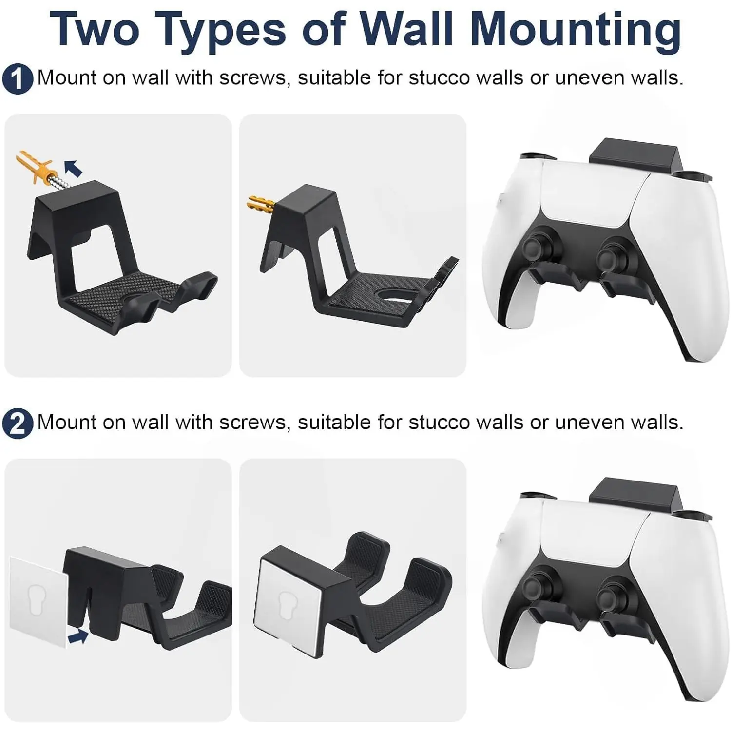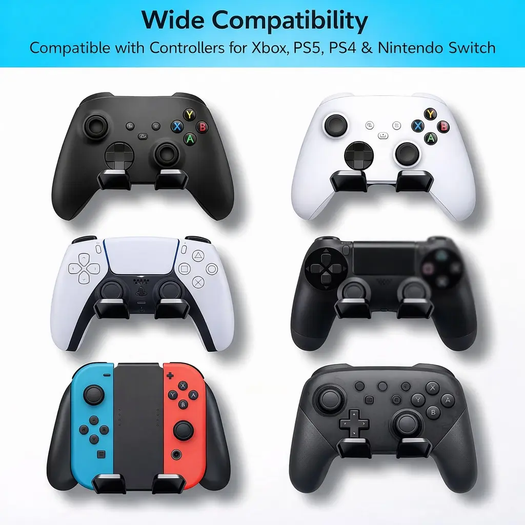 Universal Game Controller Wall Mount Holder, 2-Pack Adhesive Gamepad Storage Organizer, Fits Ps5/ps4/switch/xbox-One, Space-Saving Design