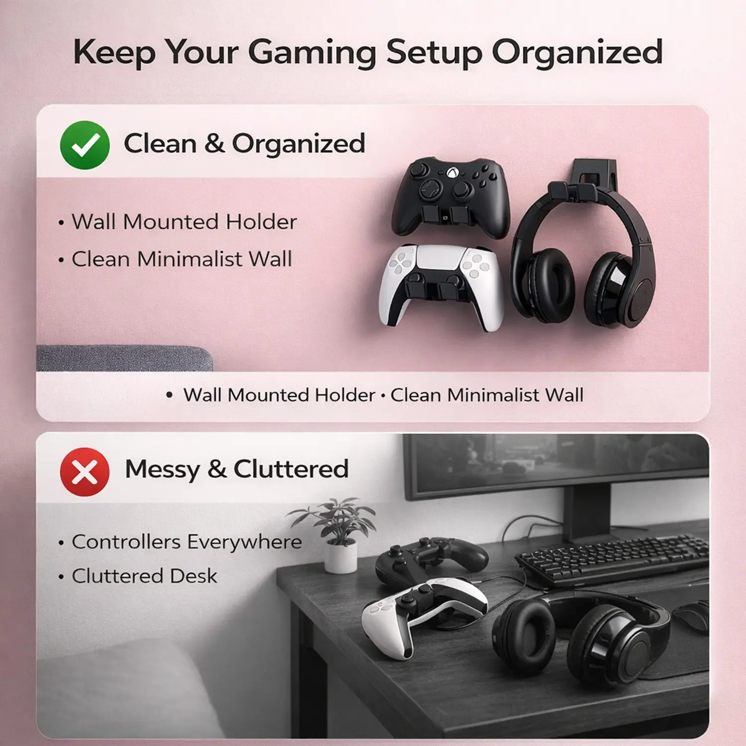 【Space-saving design】: Maximize space efficiency with our universal wall mount holder designed specifically for gaming controllers.