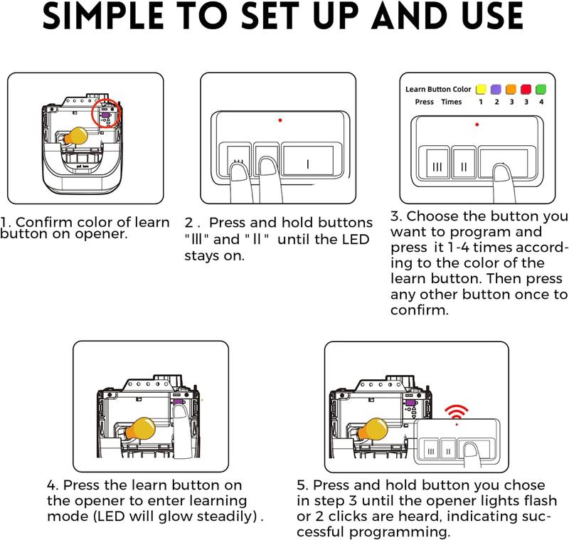 ·Universal Compatibility: for LiftMaster/Chamberlain/Craftsman garage door opener manufactured from 1993 to current, compatible with universal garage door opener including Yellow/Purple/ Red/Orange/Green Learn Button. Please refer to the model list on the A+page for the applicable models.