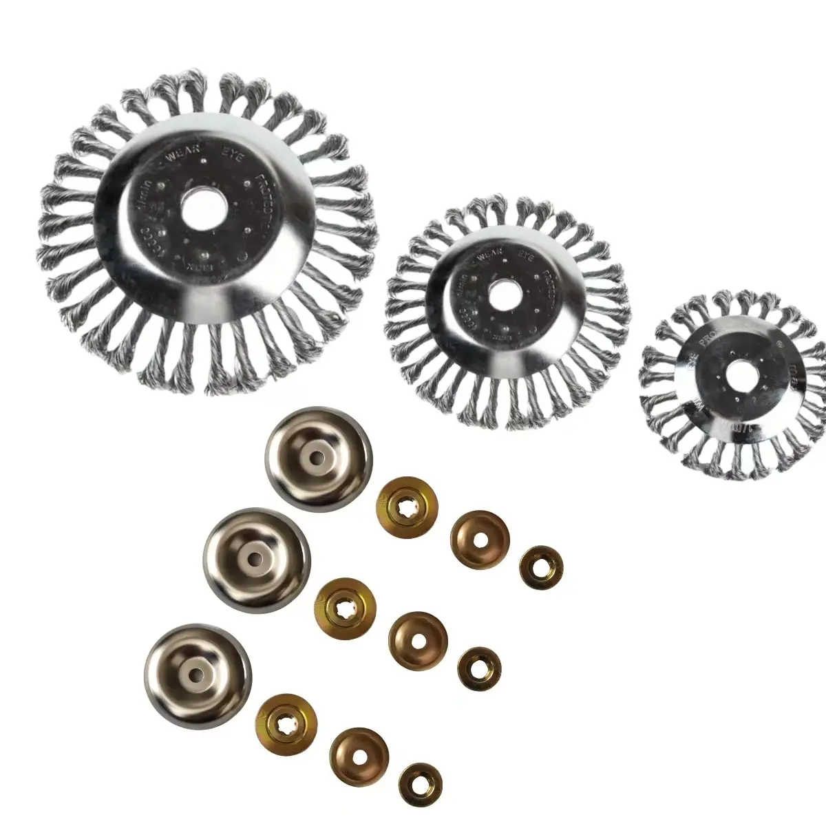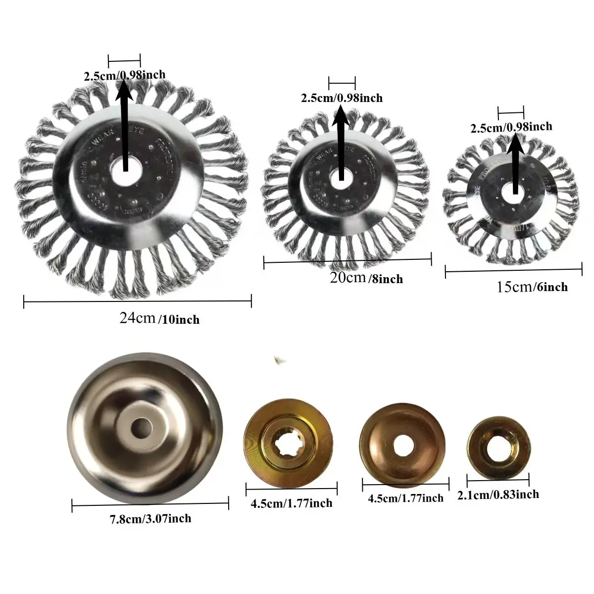 Weed wacker string head for rotary mowers; 6-inch steel wire spool; 8-inch twisted steel string; universal garden accessory