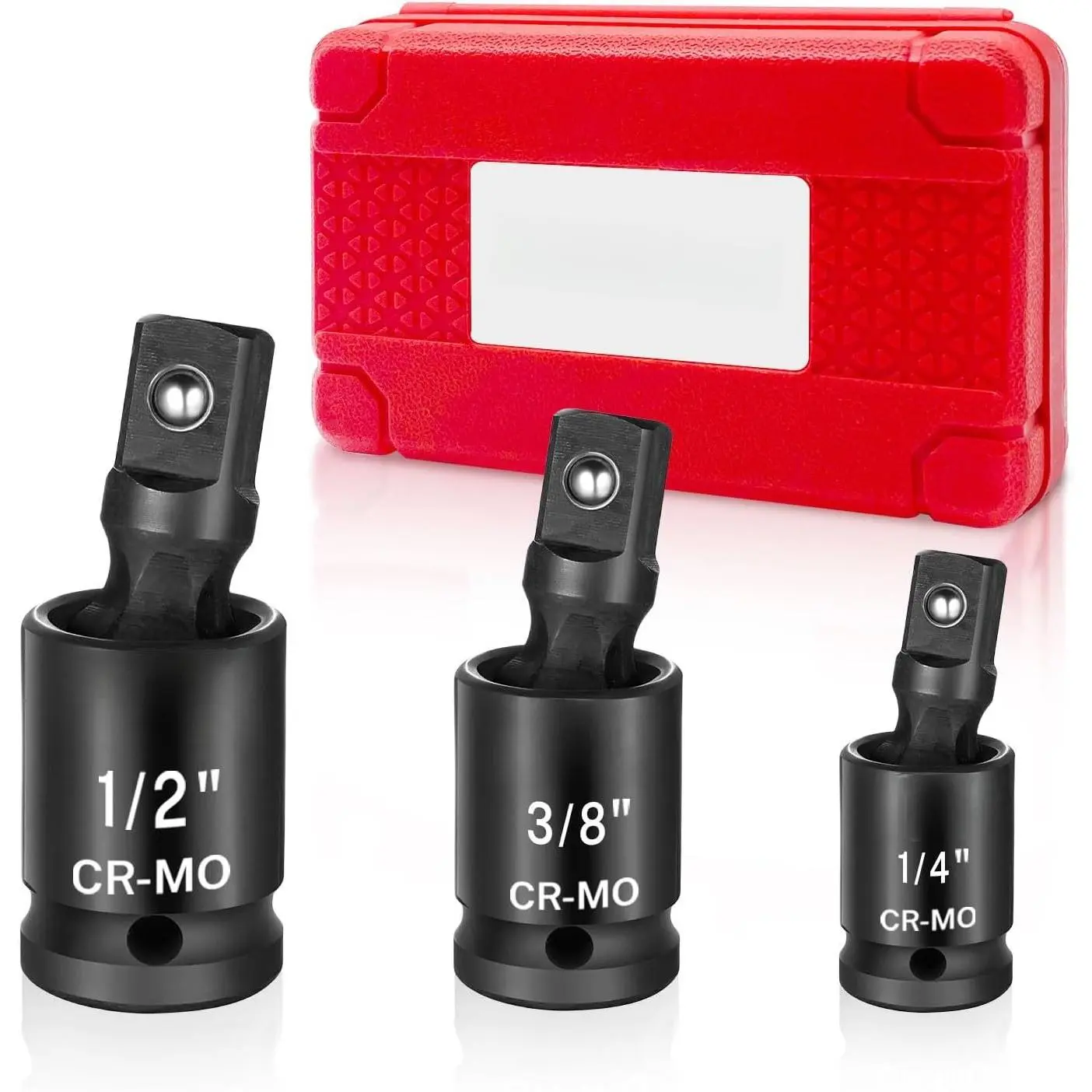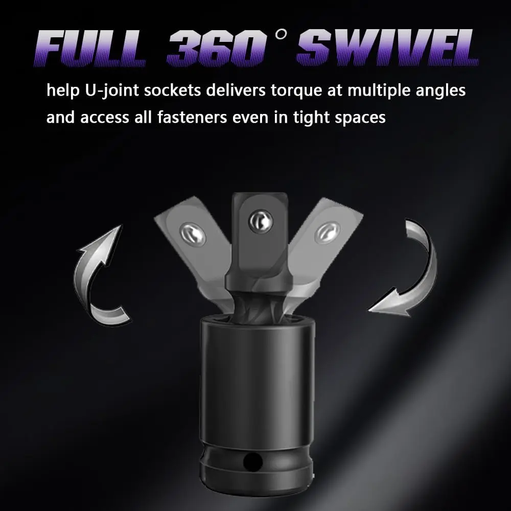 Precision Fit: maximum versatility and ease of use with our 3- Impact Universal Joint set that includes 1/4 ", 3/8" and 1/2 " drive swivel socket sizes ,Full 360- motion can help U-joint sockets delivers torque at multiple angles and access fasteners even in tight spaces