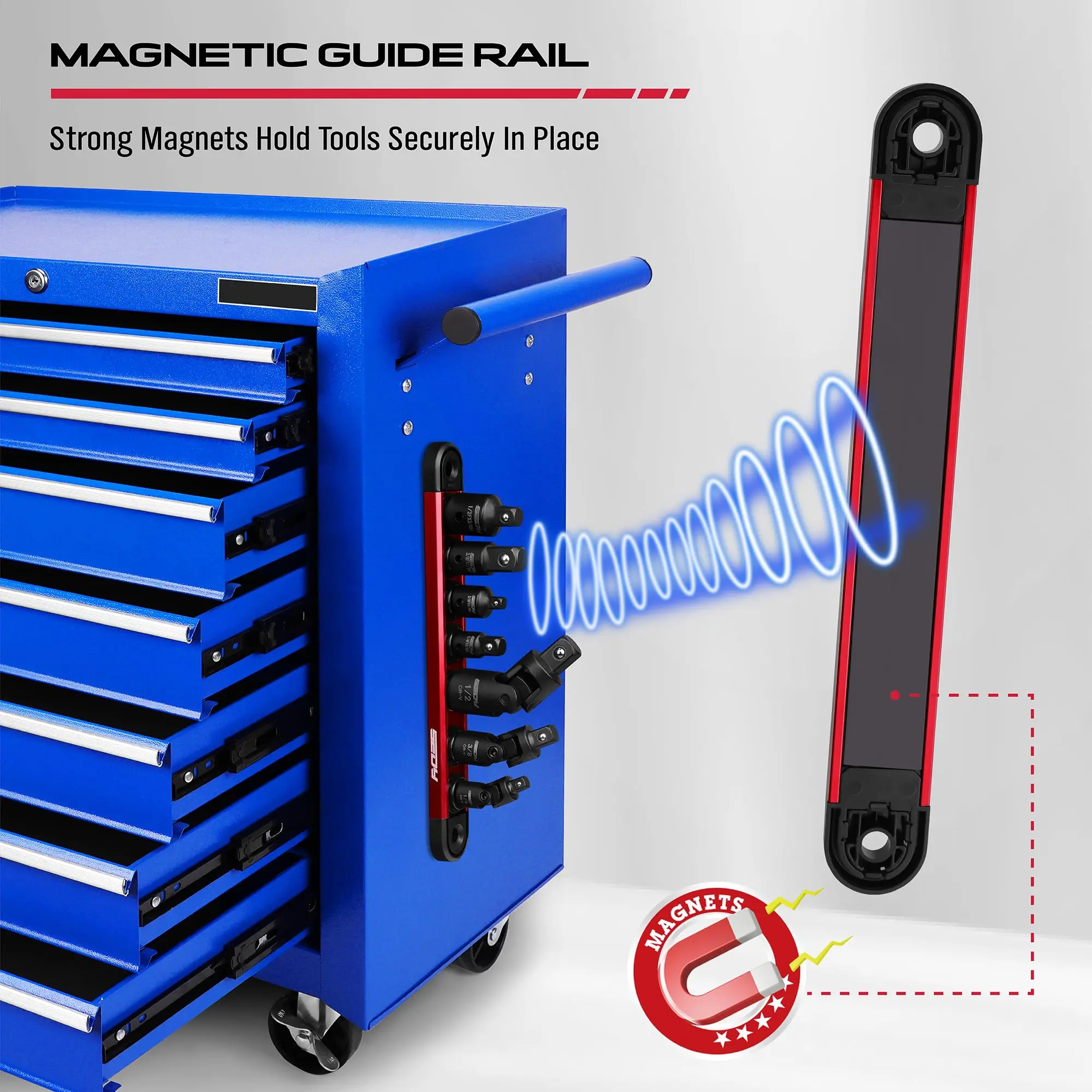 ·EASY STORAGE - Comes with a high-quality magnetic aluminum rail and 7 spring-loaded ball bearing clips to keep your universal joints and adapters organized and accessible. Say goodbye to misplaced tools