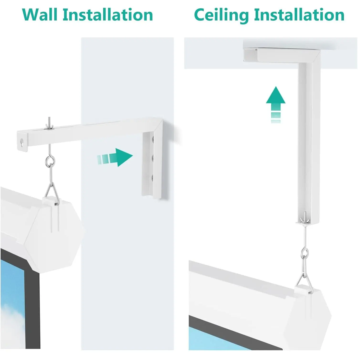 Universal Projector Screen Ceiling Mount, Wall Hanging Mount L-Brackets, 12 inch Adjustable Extension with Hook Kit, Projector Screen Placement Hold up to 80 lbs (PSM001XL-W), White