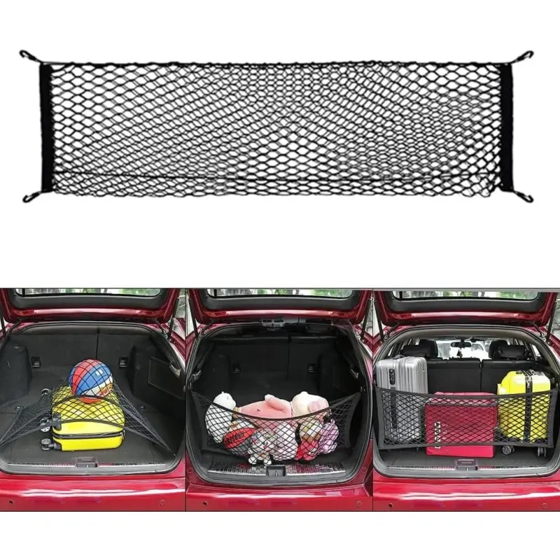 Elastic Trunk Storage Net Organizer keeps groceries, sports gear, and large items secure. It prevents items from rolling around, ensuring your storage area is organized and clutter-free. The cargo net is perfect for pickup truck beds, providing easy loading and unloading. 🛒