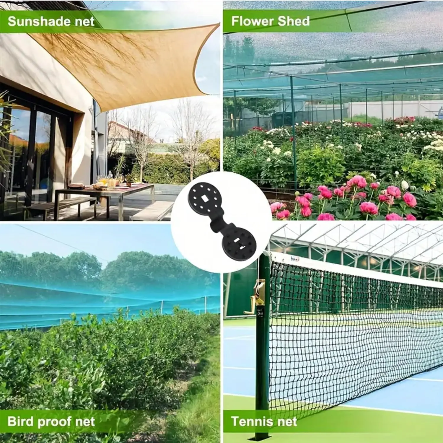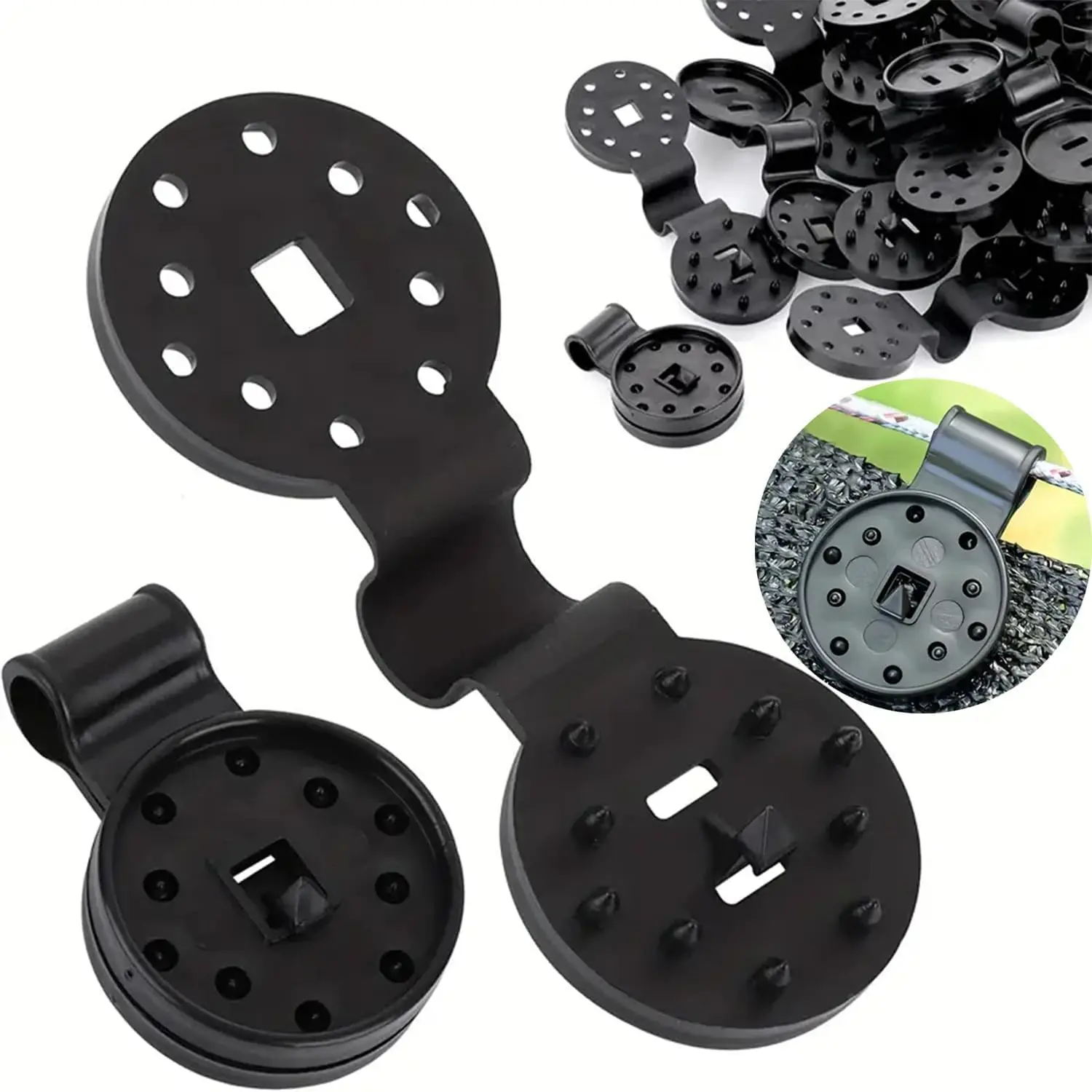 ·[EFFORTLESS INSTALLATION] The shade net fixing clip is easy to install; Just clamp the clip in the desired position and press the plastic tip firmly, and then put a rope through the hole of the clip to fix the sunshade. PLEASE NOTE: The clips can be applied with any shade fabric with mesh, not suitable for thick cloth without mesh.
