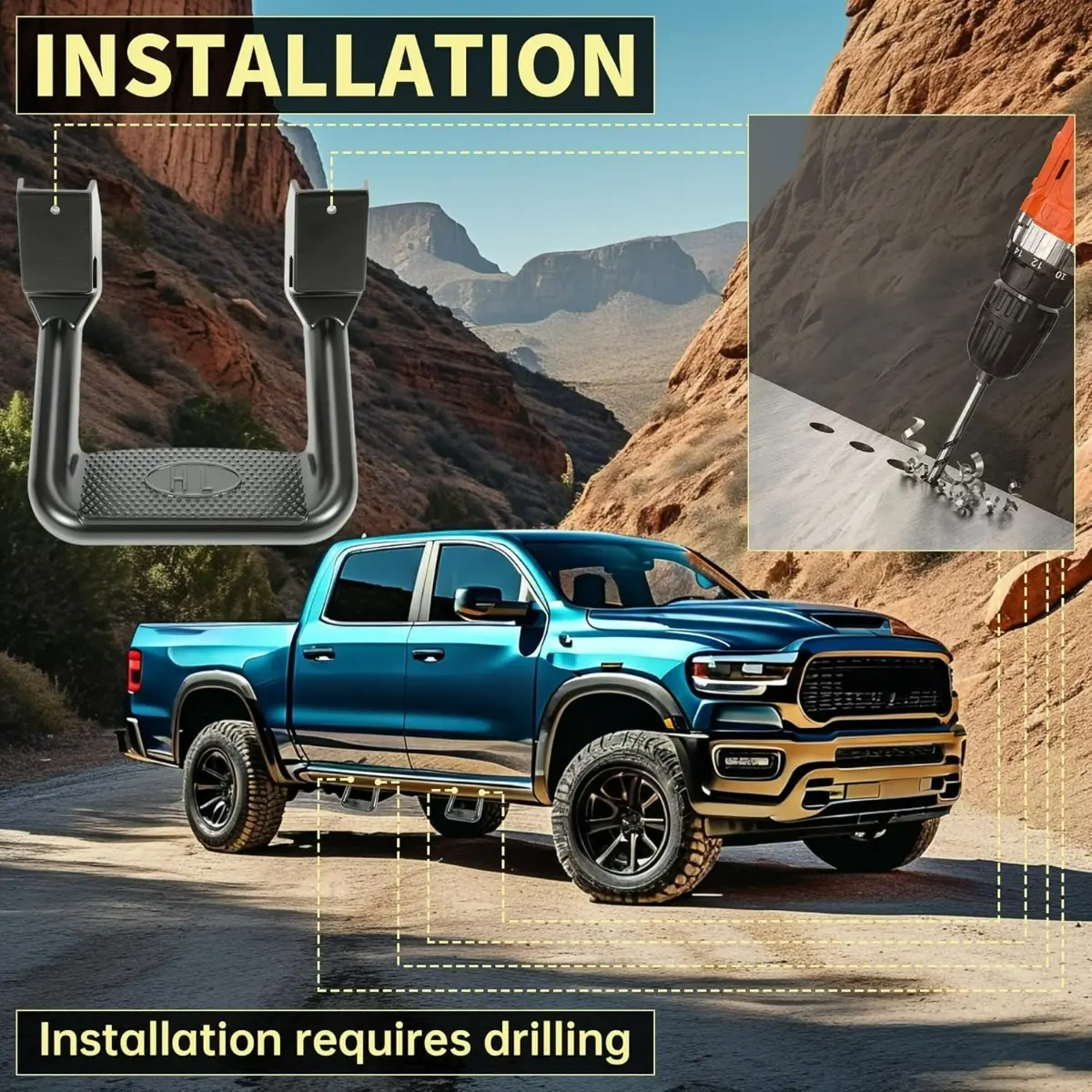 ·Superior Quality: Made of rugged aluminum, It has superb durability, not easily damaged, and can withstand extreme weather or harsh use environments. The side step uses a Electrophoresis finish to provide strong surface protection, while the surface covered with dot bumps effectively avoids slipping. This side step allows you to get in and out of a truck or Suv safely and easily