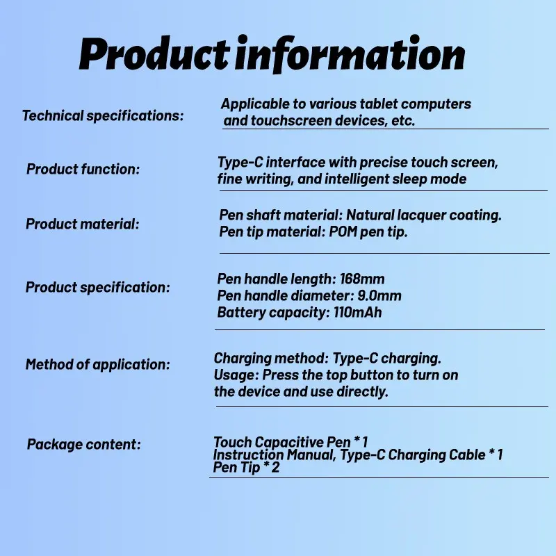 Universal Touch Pen for Android iOS Windows, Capacitive Screen Touch Function, Compatible with iPad Apple Pencil Huawei Xiaomi Tablets, Touchscreen Pen, Capacitive Stylus Pen, USB Rechargeable Stylus