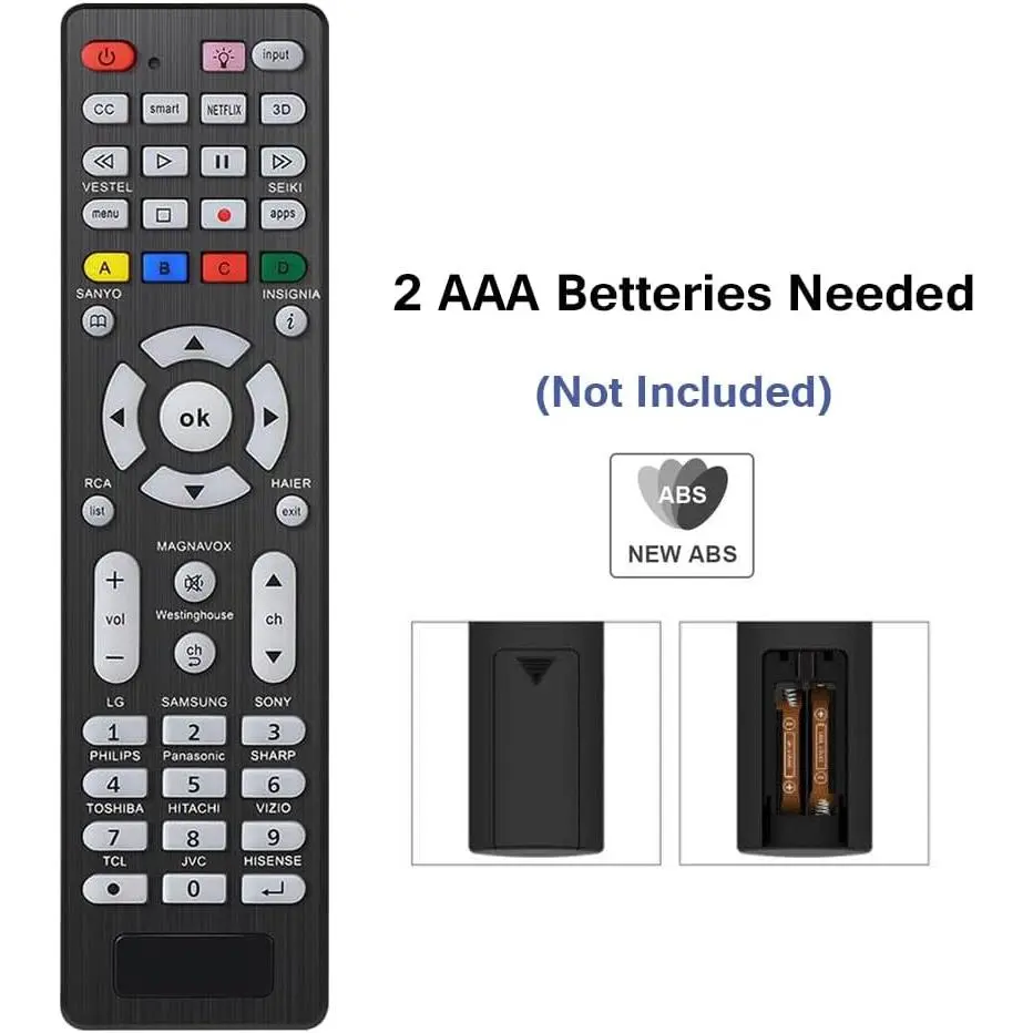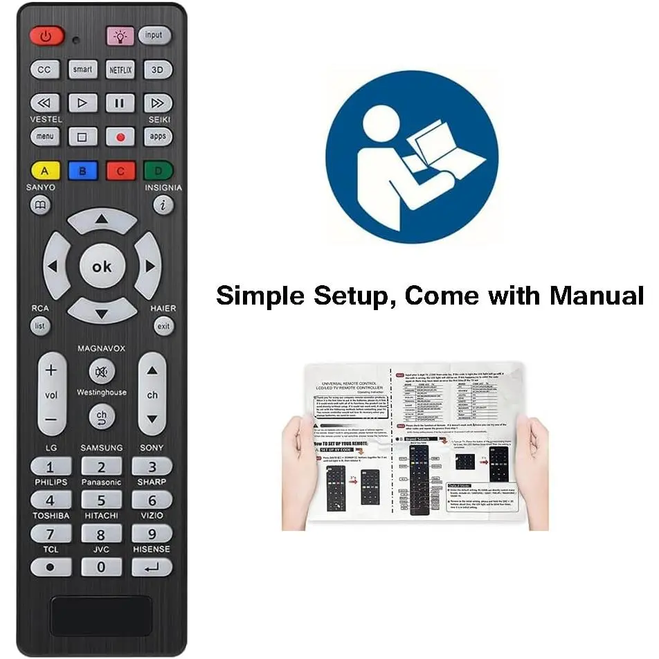 Universal TV Remote Replacement: Compatible for All Samsung, Sanyo, LG, Sony, Philips, Panasonic, Sharp, Toshiba, Hitachi, Vizio, TCL, JVC, Hisense, RCA, Haier, Seiki, Insignia, Magnavox, Westinghouse, Vestel Smart TVs. (Note: Does NOT work for the brands that not on the list)