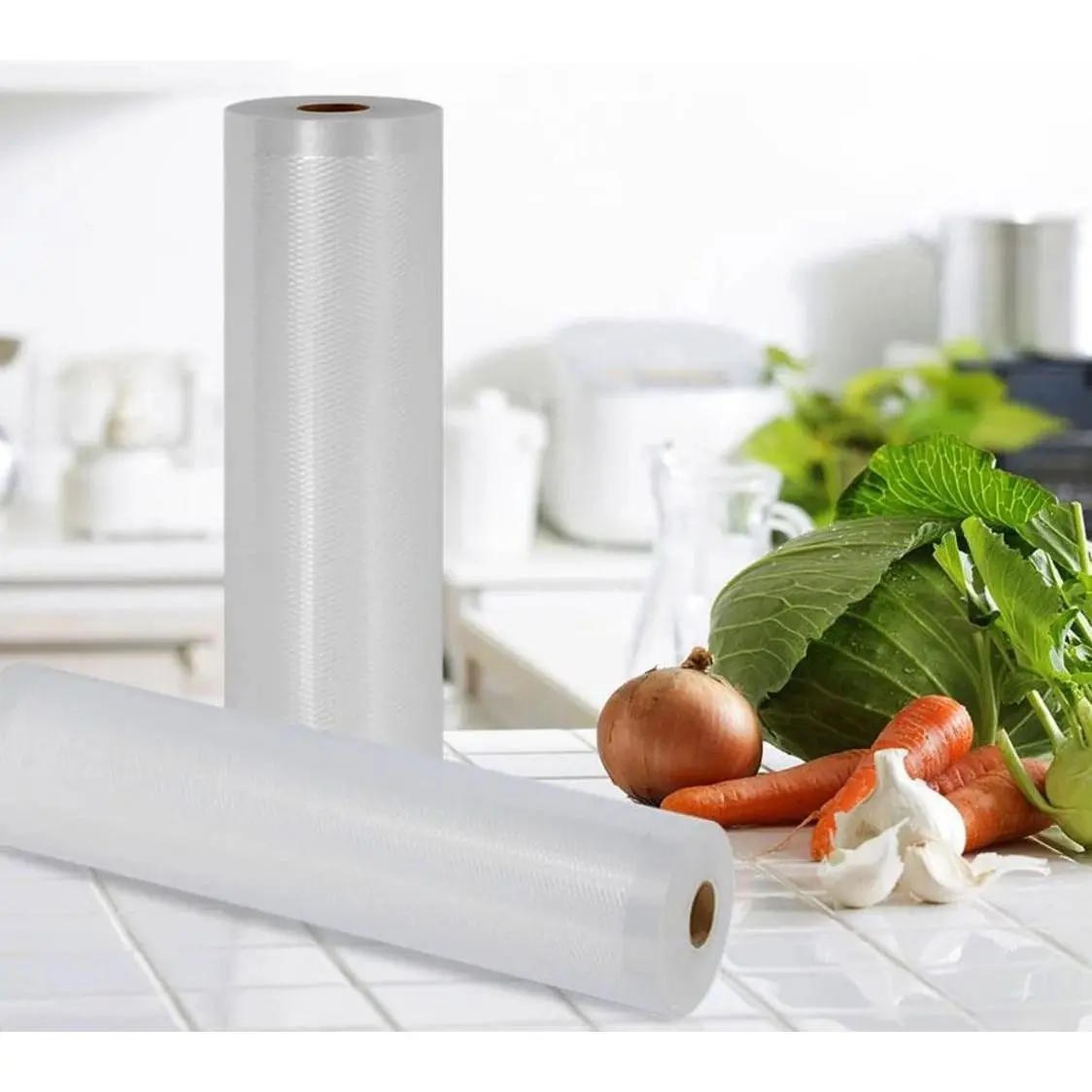 Universal Vacuum Sealer Bags Create Custom Length Vac Bags for All Food Types Works with Virtually All Kitchen Vacuum Air Sealing Systems Multi Layered Bags to Seal in Freshness Perfect for Preparing Foods via Sous Vide Food Grade Quality and Safety, BPA Free Re Usable & Safe Vac Bags for Freezer, Microwave, Boiling. Vac Bag Roll Width: 11.0'' -inches (-Each).;2) x Rolls of Vacuum Sealer Bags