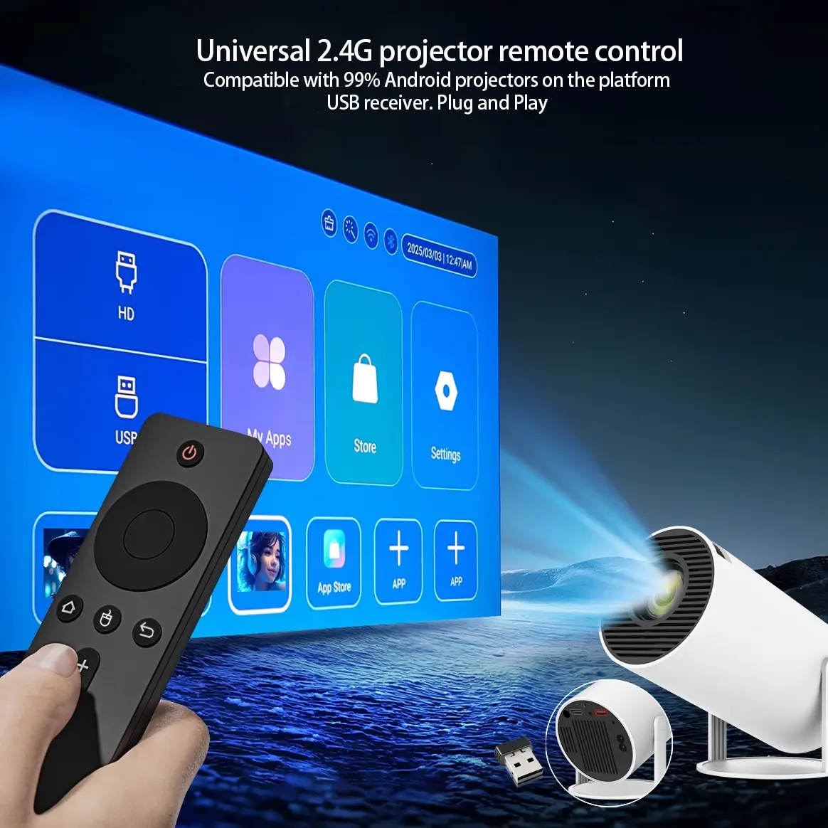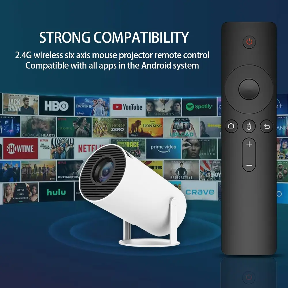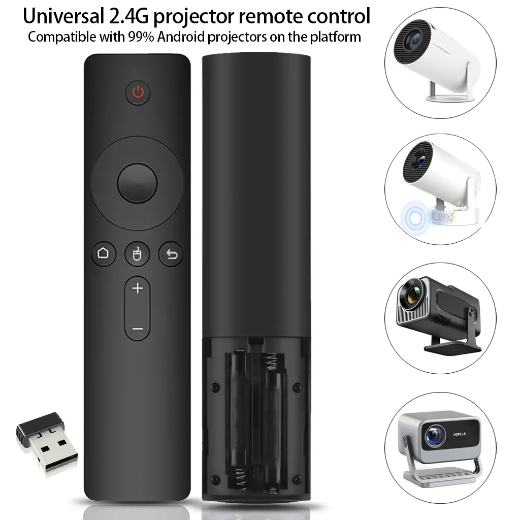 Universal projector remote control, 2.4G wireless 6-axis air mouse remote control, compatible with Hy300Pro, HY260PRO and other projector remote controls. Simple and classic design, universal replacement model, all-around wireless remote control for projectors.