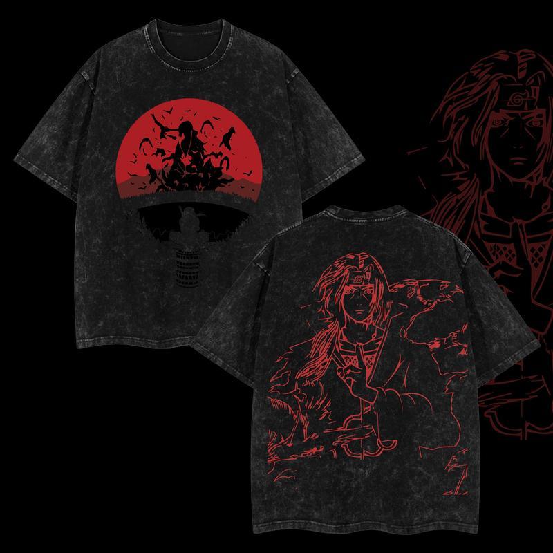 5. Universe " The Akatsuki" Uchiha Itachi / The Silent Hero - Naruto Edition Double Printed Oversize Lightweight Acid Washed Tee Anime Graphic Design Top Cotton Streetwear Itachi of Konoha Anime T-Shirt Clothes Menswear Womenswear