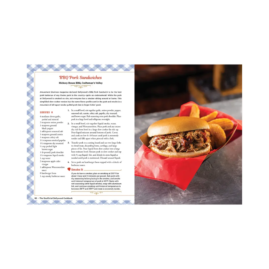 Inside this hard cover edition, you’ll discover recipes inspired by Granny Ogle’s Meatloaf Stackers, sweet treats, refreshing drinks, and much more—all designed to bring the Dollywood experience to life without the long drive or ticket lines. Plus, the friendly guidance ensures even novice cooks can feel like pros in the kitchen.