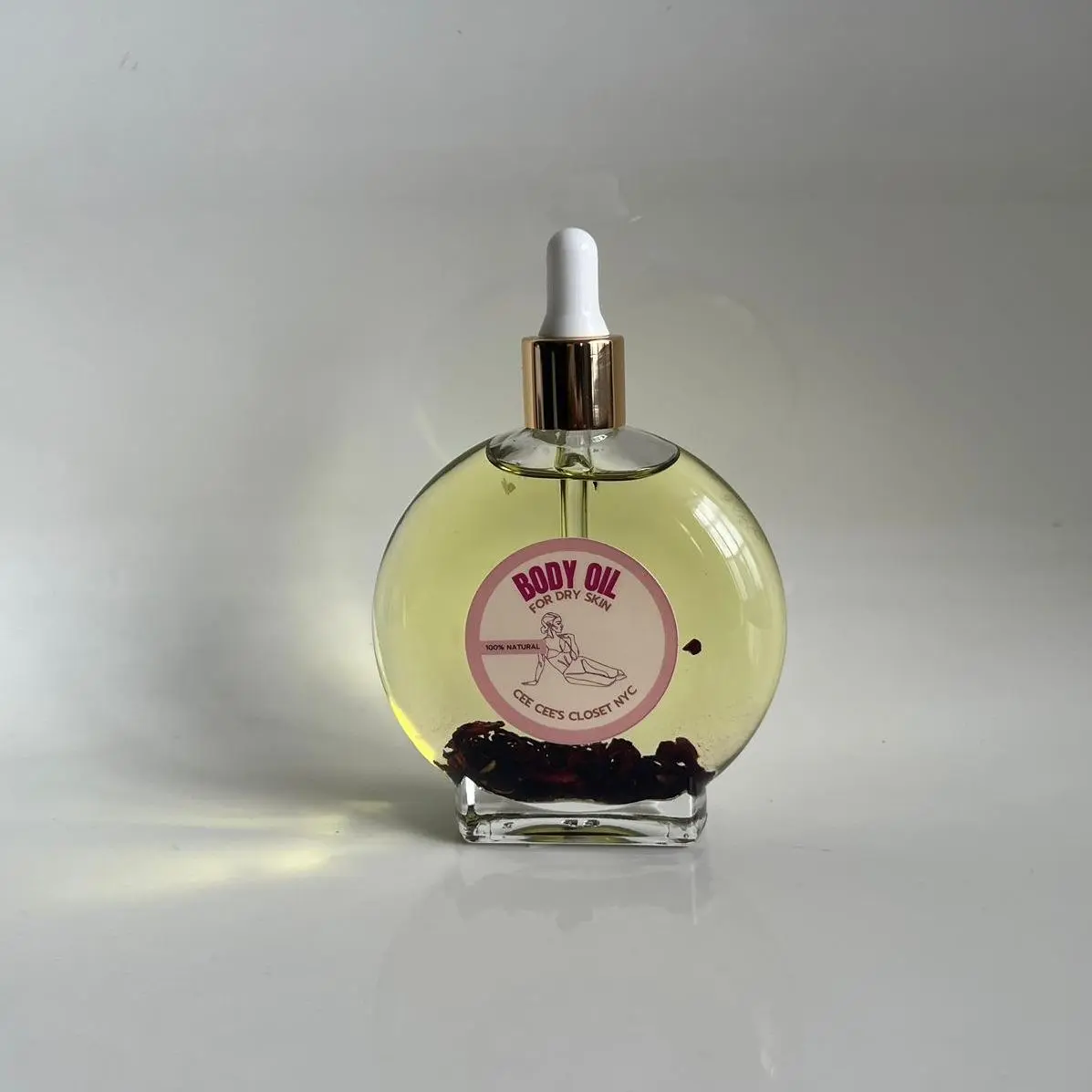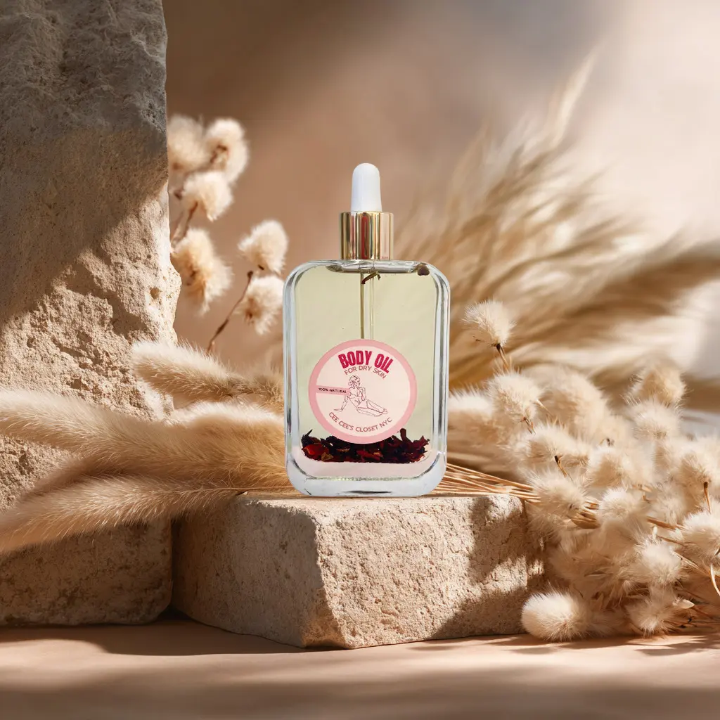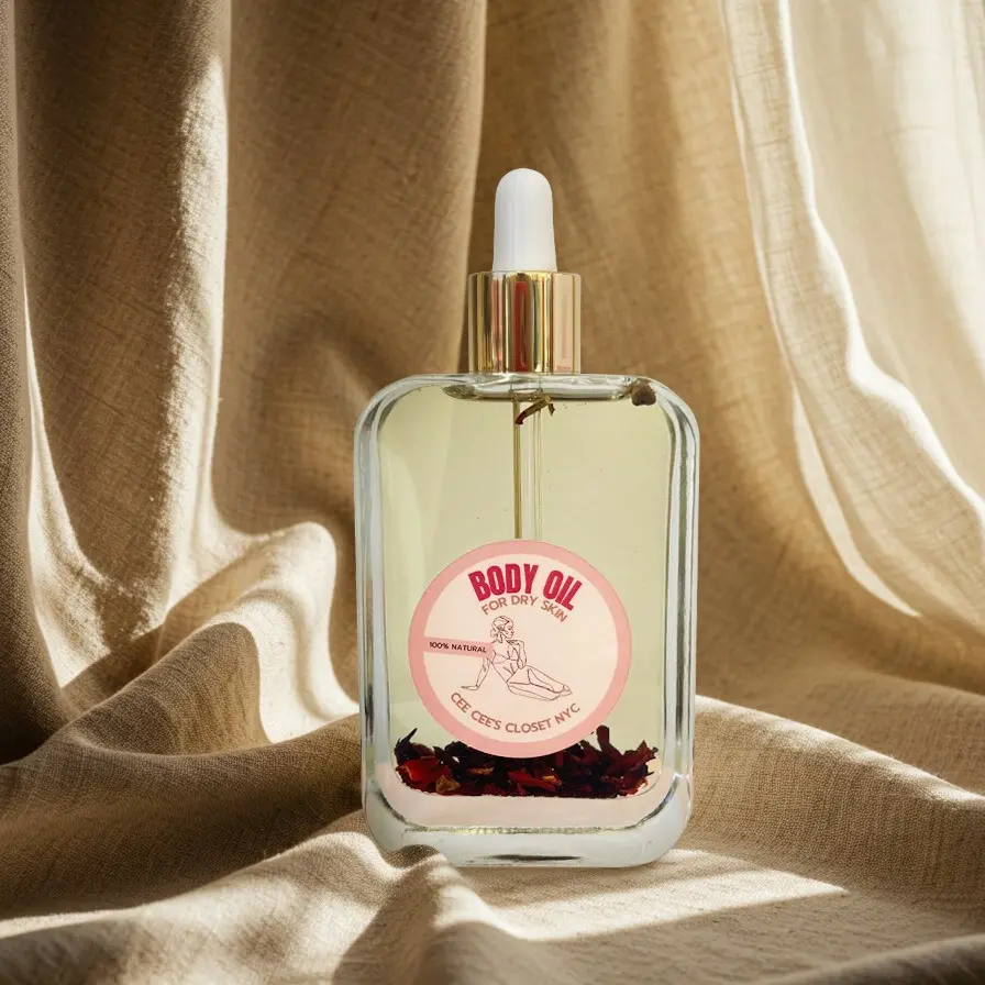 Heal chronically dry skin with our moisturizing body oil. This is a quickly absorbed dry oil formulated with a premium blend of organic sweet almond oil, sunflower seed oil, grapeseed and moringa oil. We've infused these oils with organic hibiscus petals to give the skin an extra boost of hydration and leave your skin feeling as smooth as silk. This oil is fragranced free.