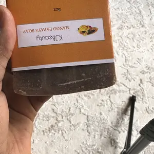 I've been using the mango and papaya soap for fifteen days and my face has improved a lot. I've had acne and acne scars since 2020, and this soap has made such a difference to my skin. With my face wet, I rub the soap on the areas around my chin and massage for a minute, and then rinse.