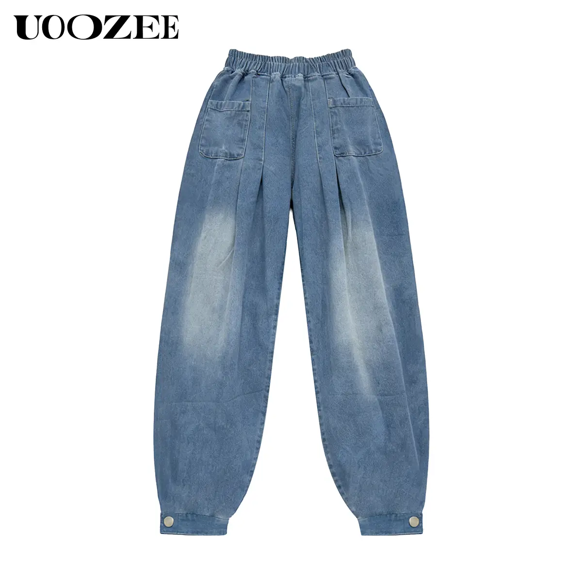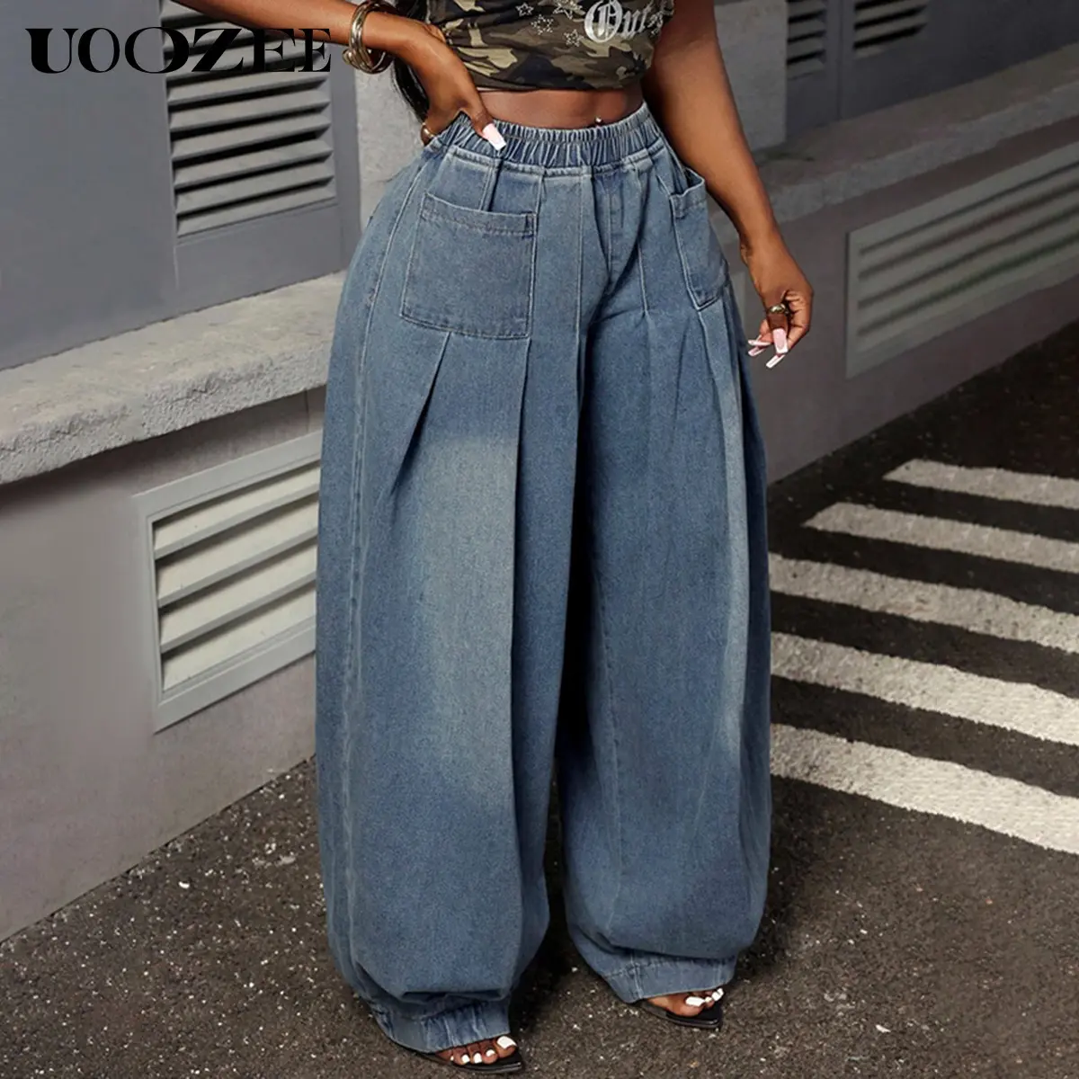 โจ Elevate your style with UOOZEE's Spring Autumn jeans! These boyfriend-style retro jeans feature a solid color, oversized, and loose fit. Perfect for casual stacked looks, they offer high elasticity and a high waist design. ๐