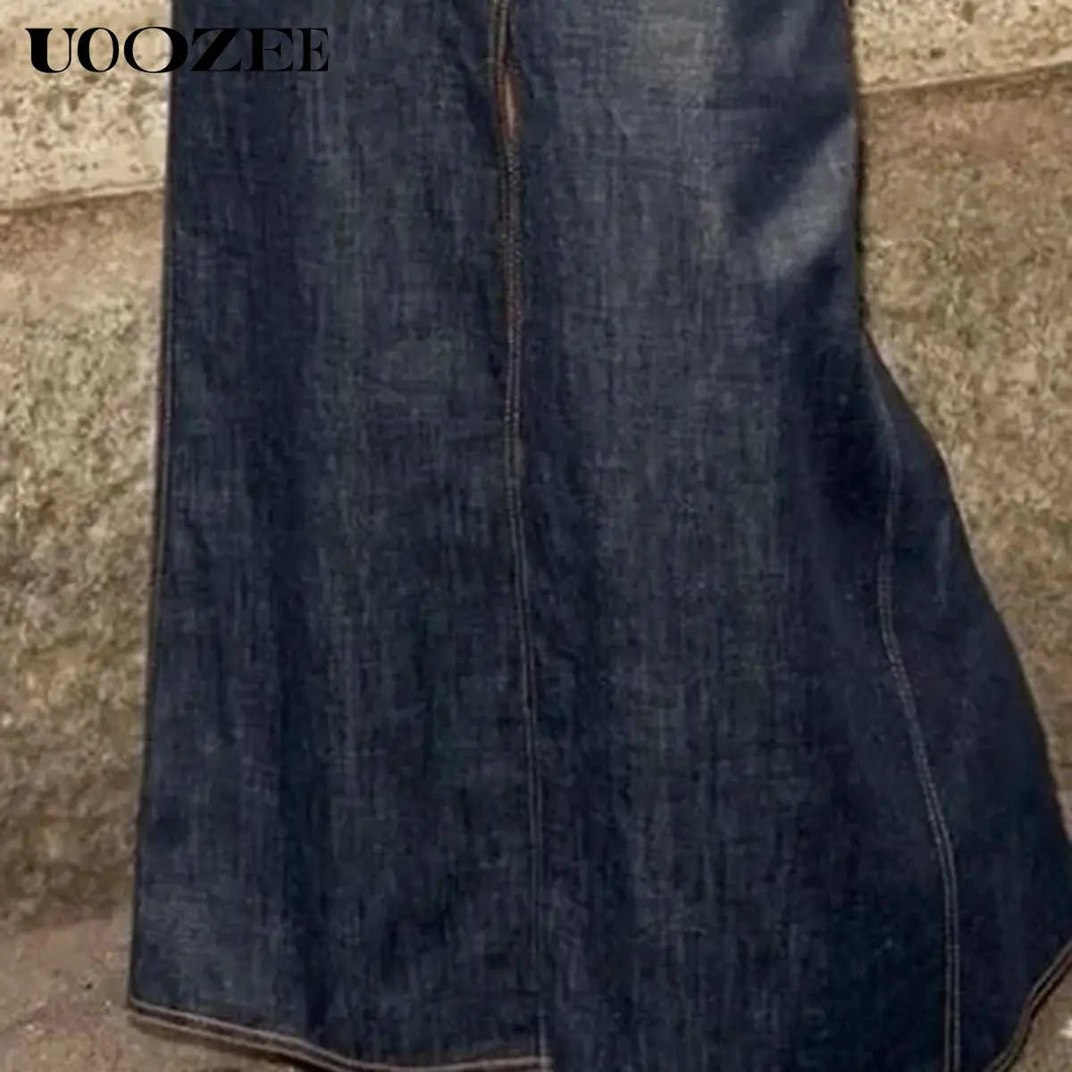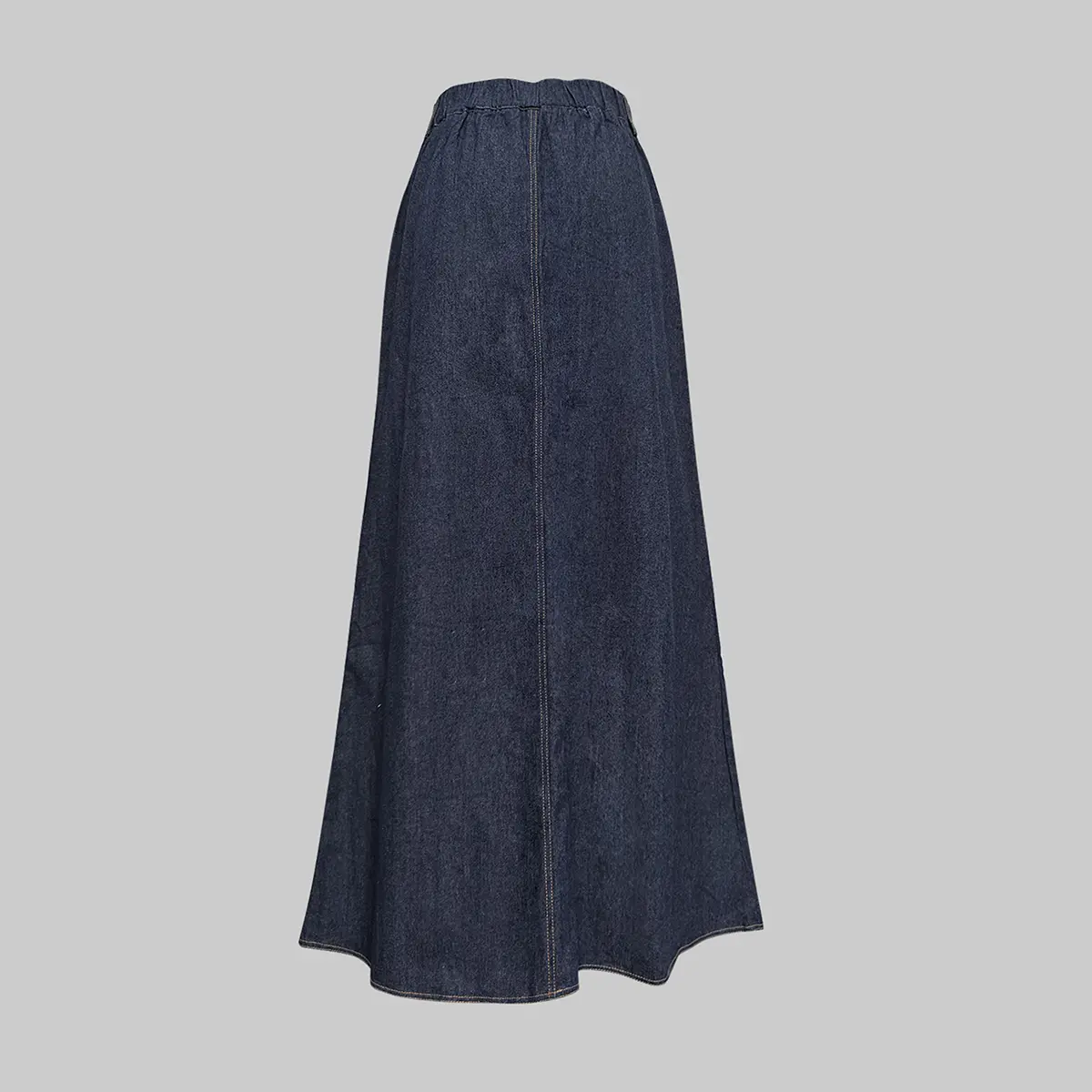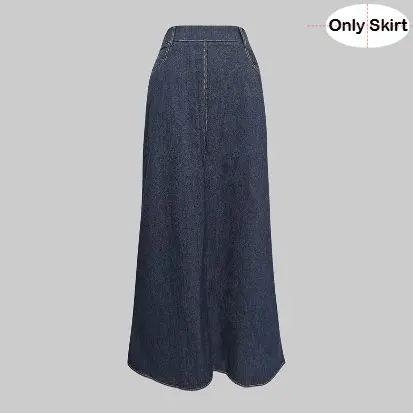 UOOZEE Women's No Belt (Only Skirt) Solid Color Denim Blue Skirt, Soft Slight Fading Pockets Zipper Straight Fit, Breathable & Comfortable, Casual All-Match Rear Elastic Waist Column Skirt Minimalist Maxi Womenswear Breathable