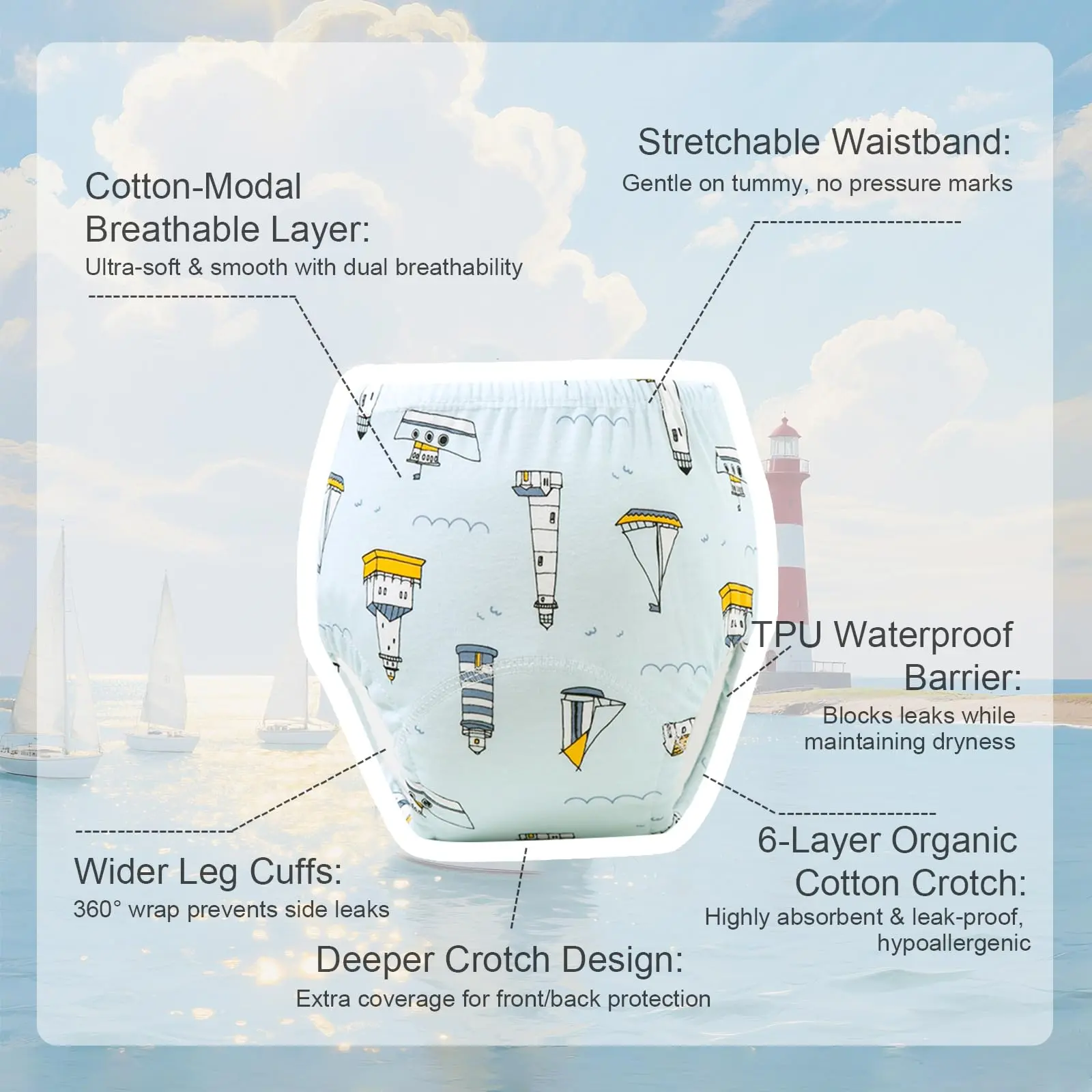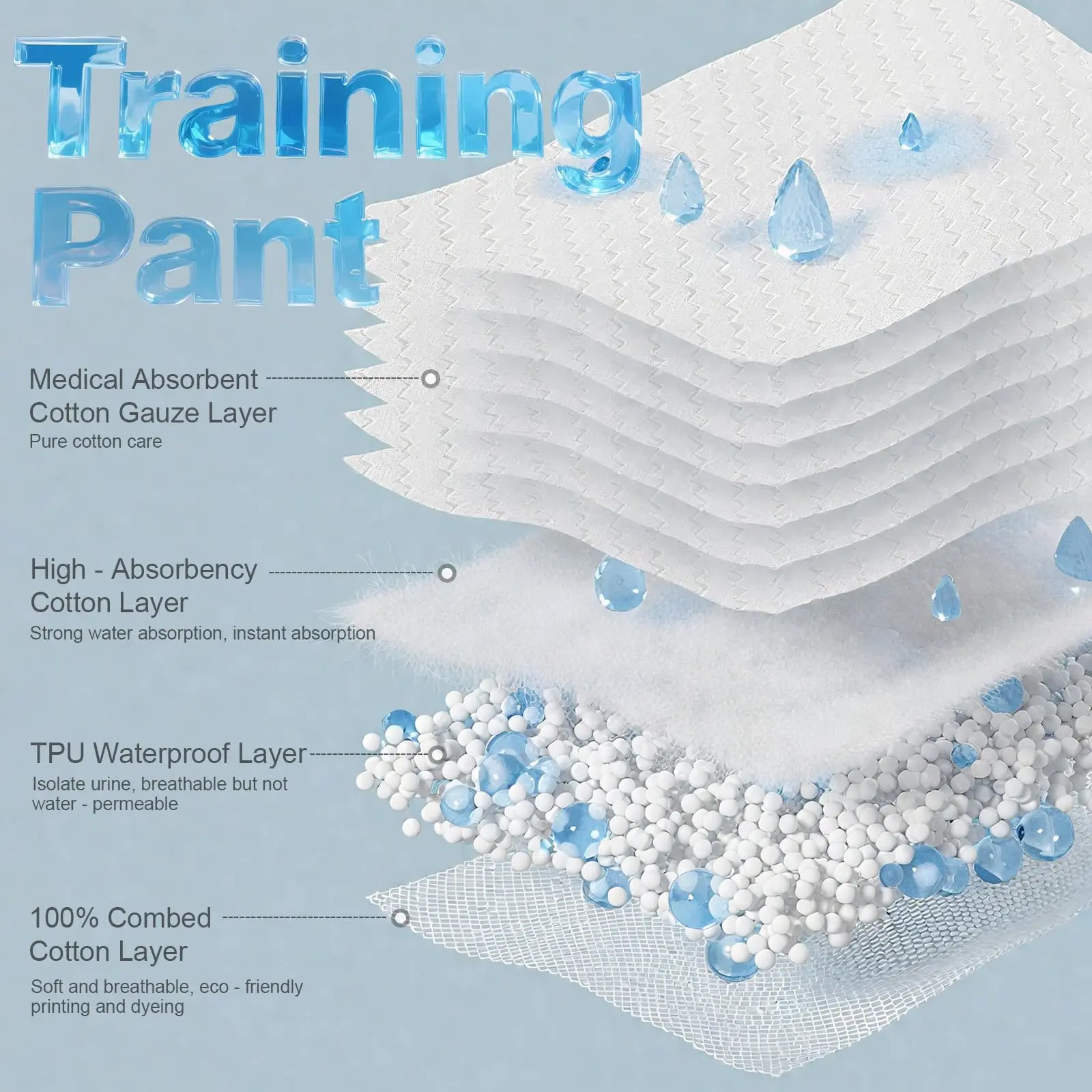 ·Highly Absorbent & Leak-Proof Design: Featuring a 6-layer absorbent core, our toddler training underwear girls and boys effectively wicks away moisture and prevents leaks, giving parents peace of mind during the potty training phase.