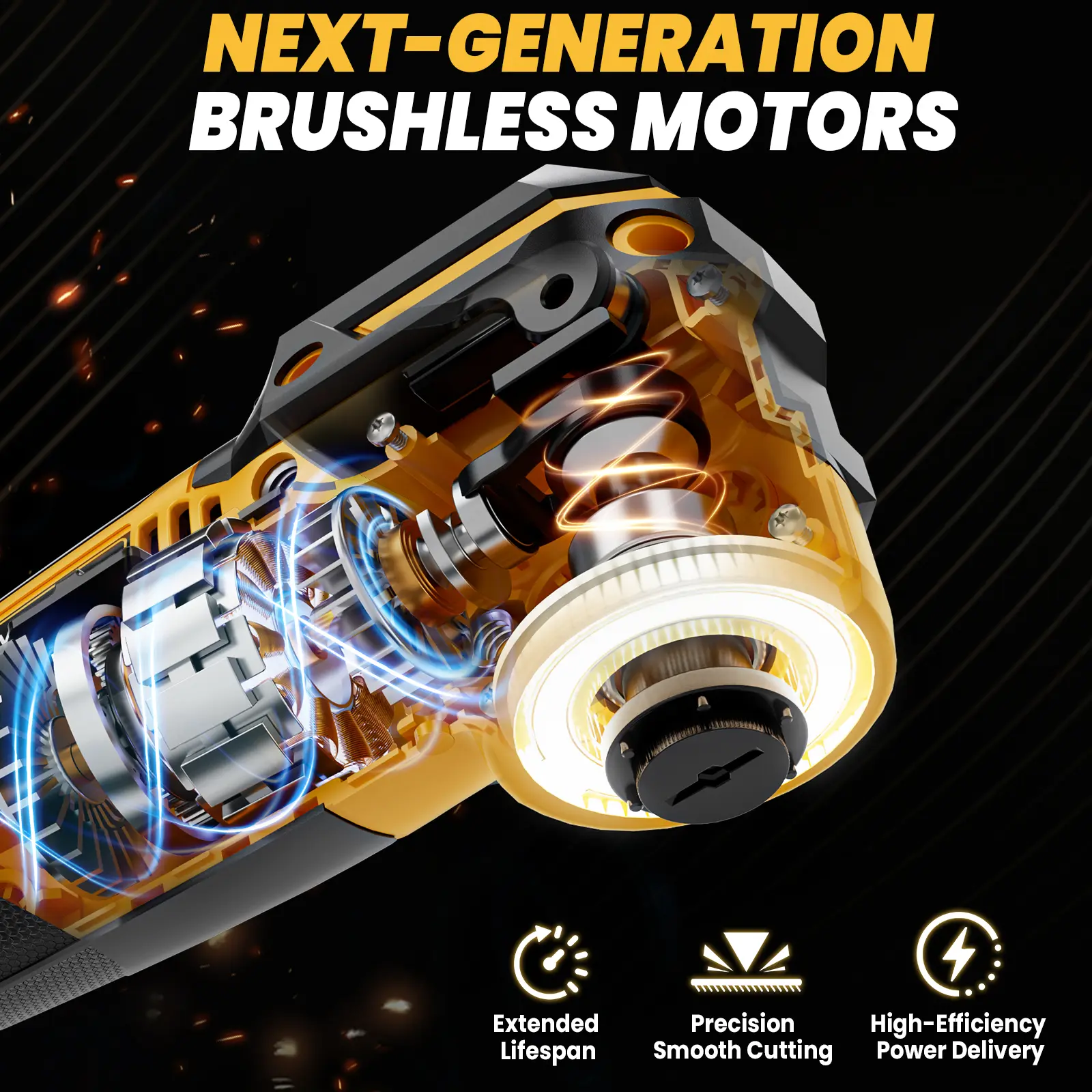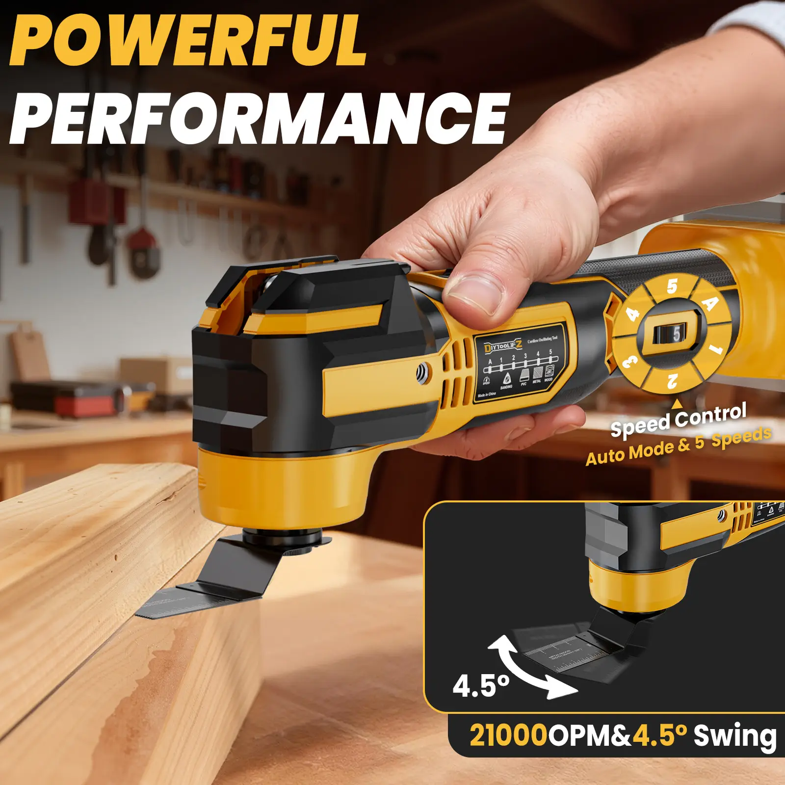 ·【Power Beyond Its Class】-This oscillating multi-tool integrates a powerful brushless motor and high power output with Auto+ 1-5 intelligent speed control. Master a vast range from 12,000 to 21,000 OPM, which—combined with the 4.5° professional angle of this precise oscillating saw tool—lets you tackle everything from delicate tasks to tough materials with ease.