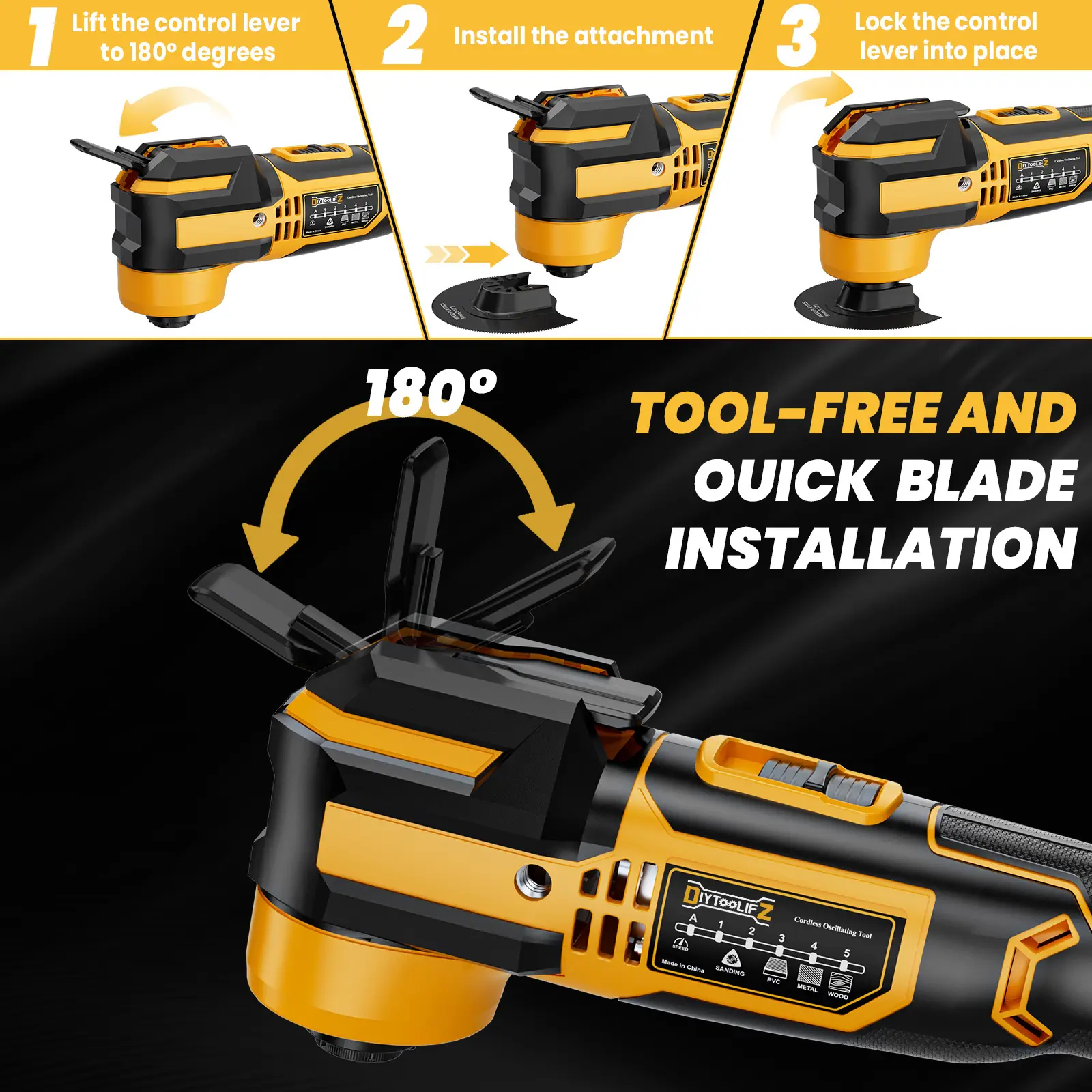 ·(NO BATTERY)【Compatible with DeWalt Batteries】- Our Oscillating Tool Compatible with DeWalt 20V batteries (Battery Not Included). This direct compatibility allows you to maximize your investment, streamline your toolkit, and tackle demanding tasks with proven, cordless power.【Battery not included!】