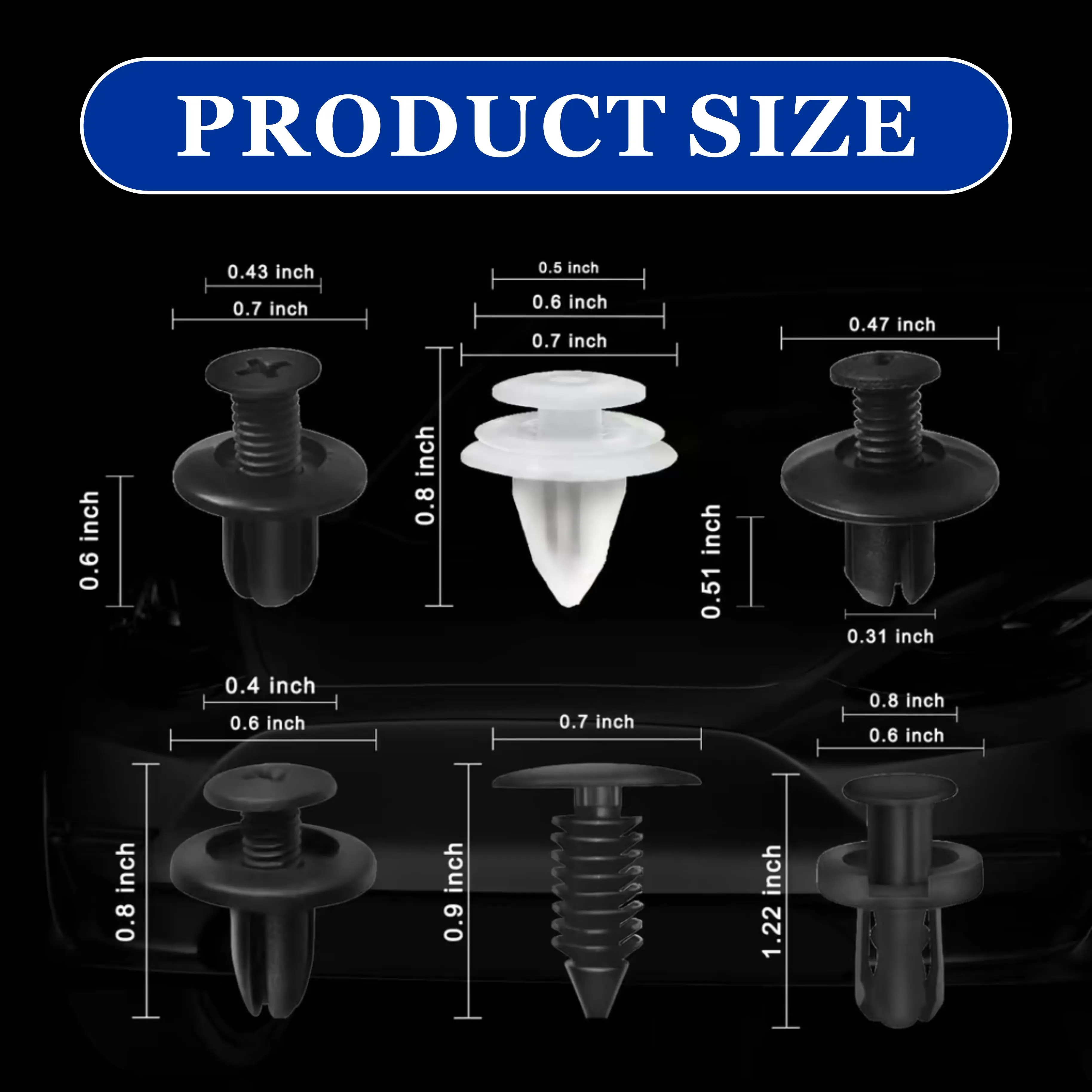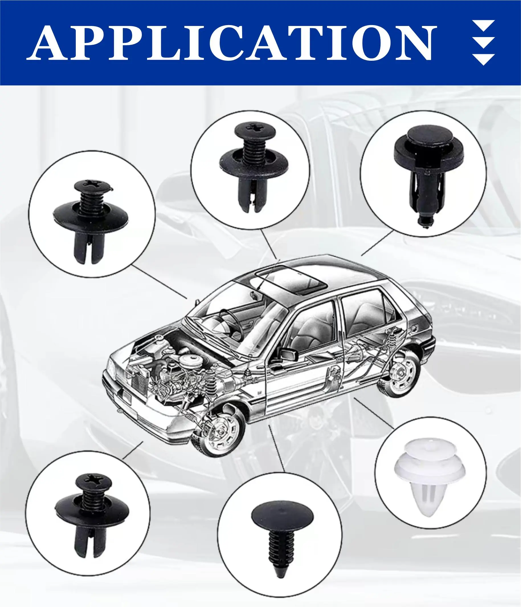 ·Plastic rivet clips: Ensure secure attachment.