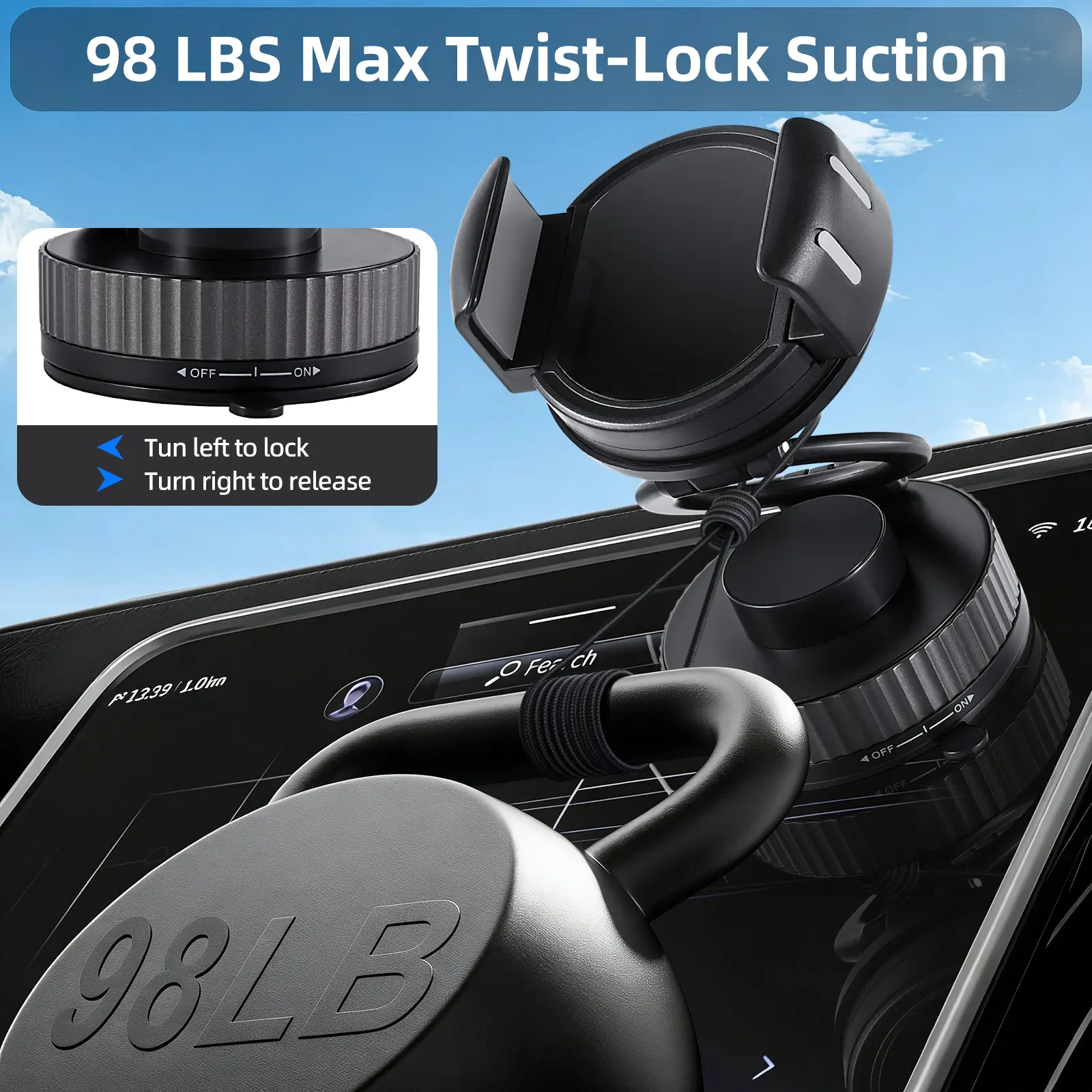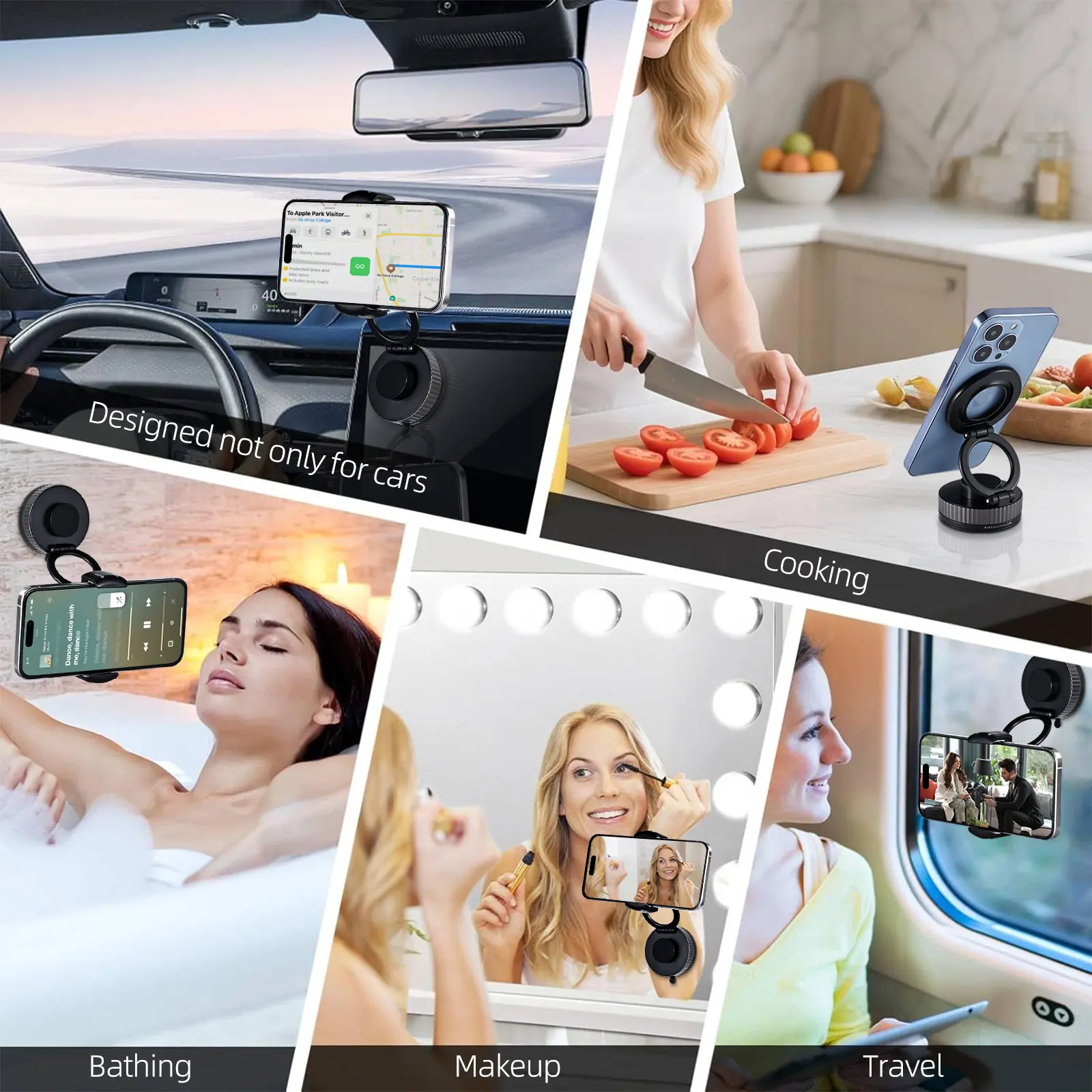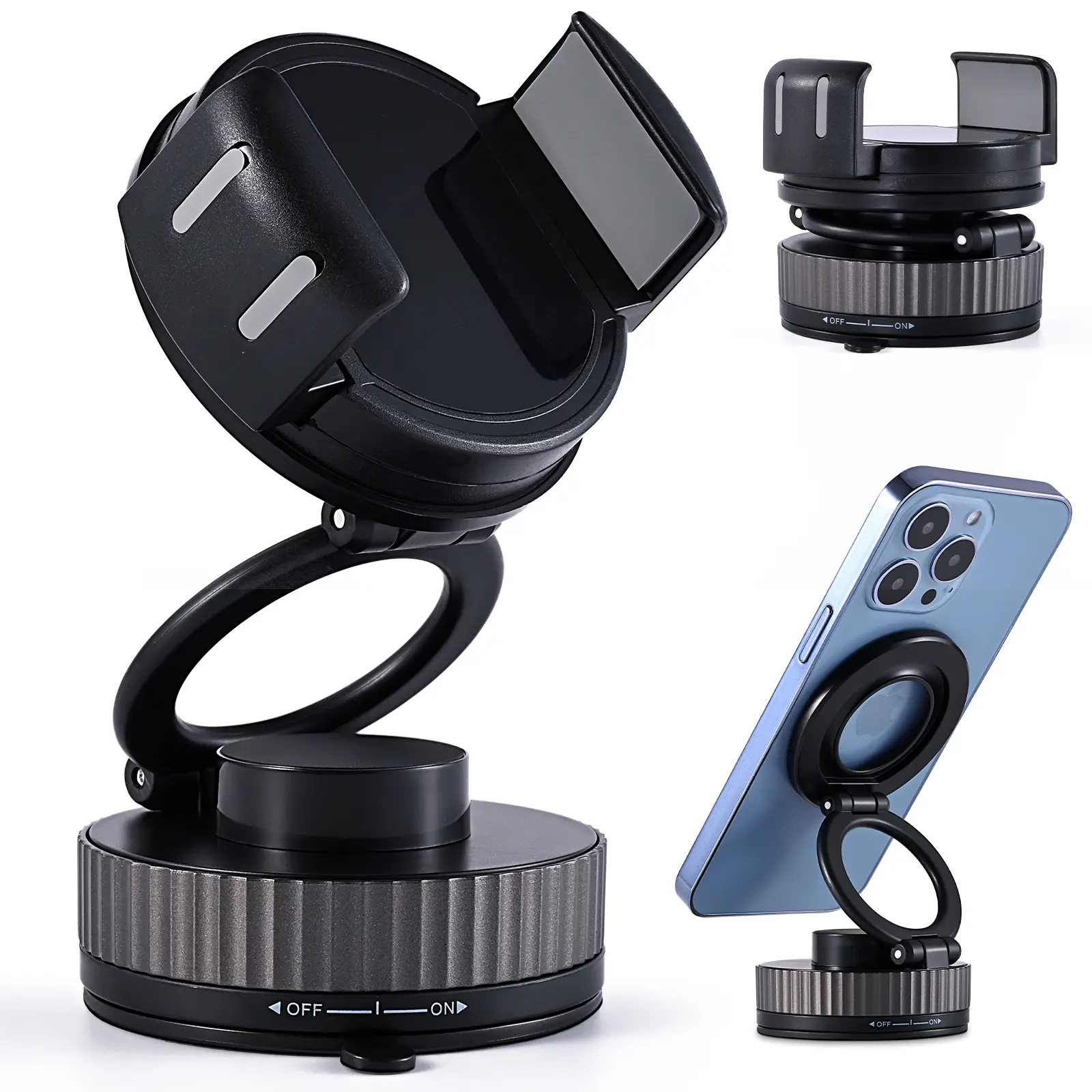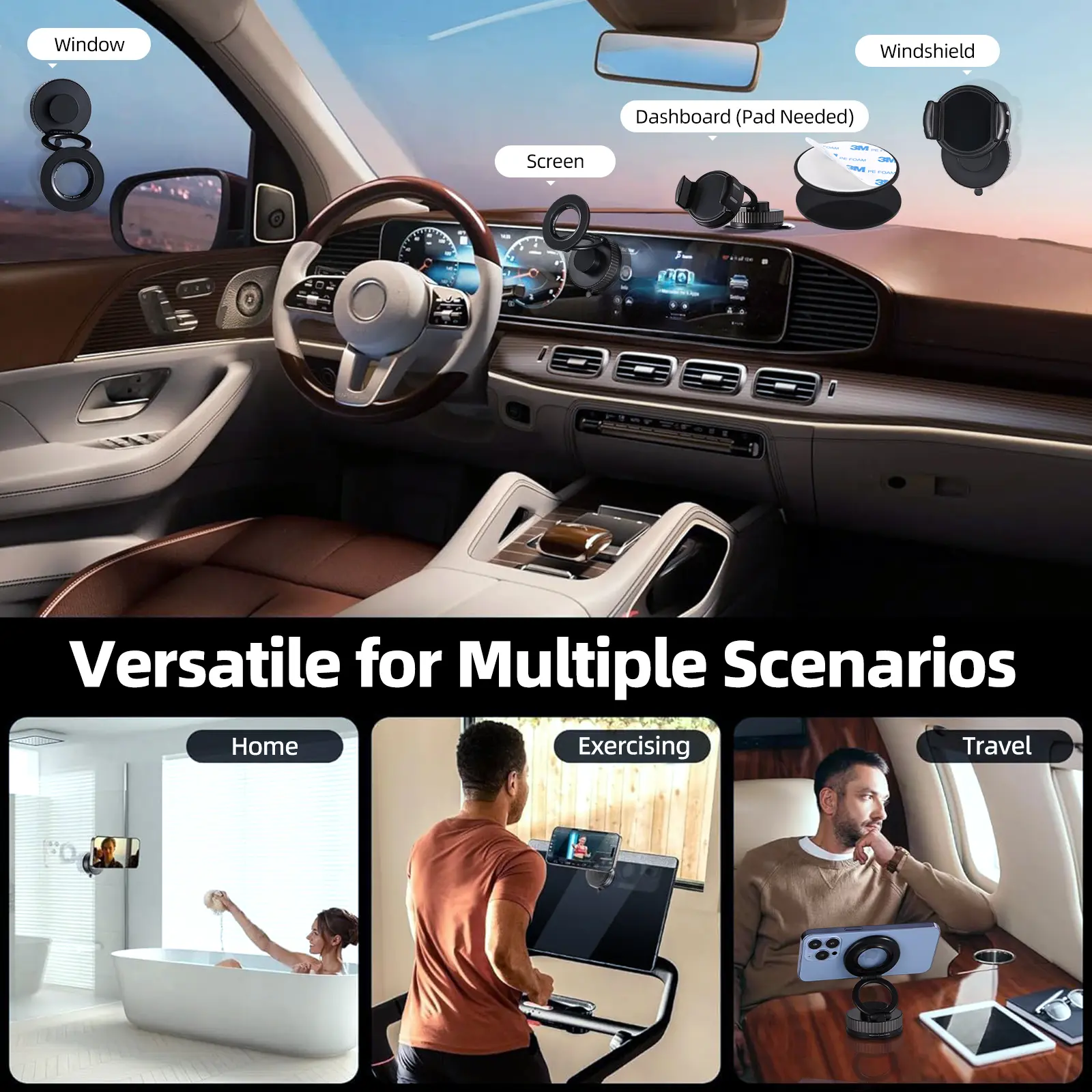 【Strengthened Vacuum Suction Cup with Manual Twist Enhancement】Featuring reinforced vacuum suction and a twist-lock mechanism, this foldable magnetic car mount delivers the ultimate physical suction power. Unlike sticky mounts, this magnetic phone holder for car offers a quick-release design for easy repositioning without leaving any residue.