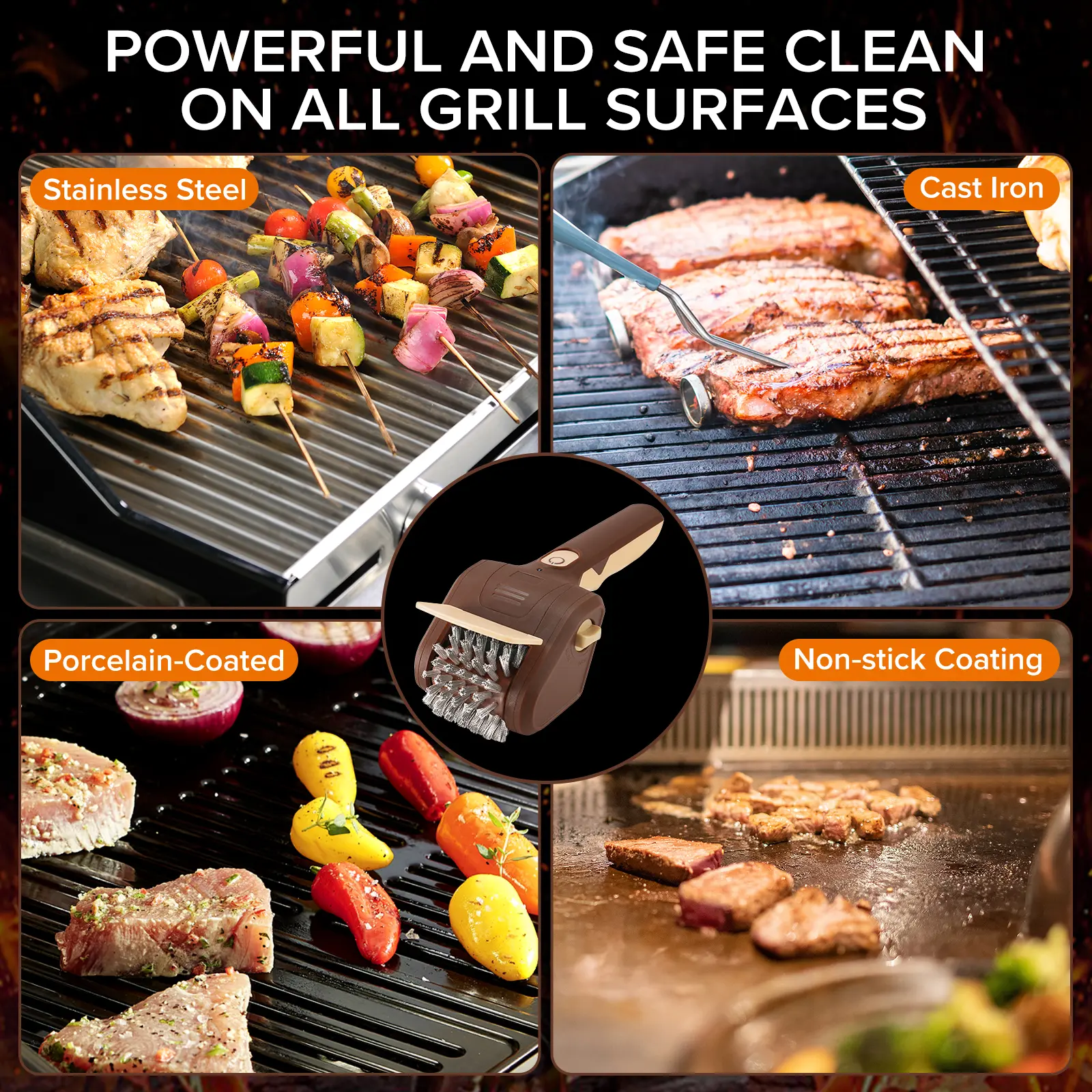 ·Perfectly safe for ceramic, cast iron, stainless steel and most grill surfaces. Spend less time scrubbing and more time enjoying delicious BBQ with family and friends!
