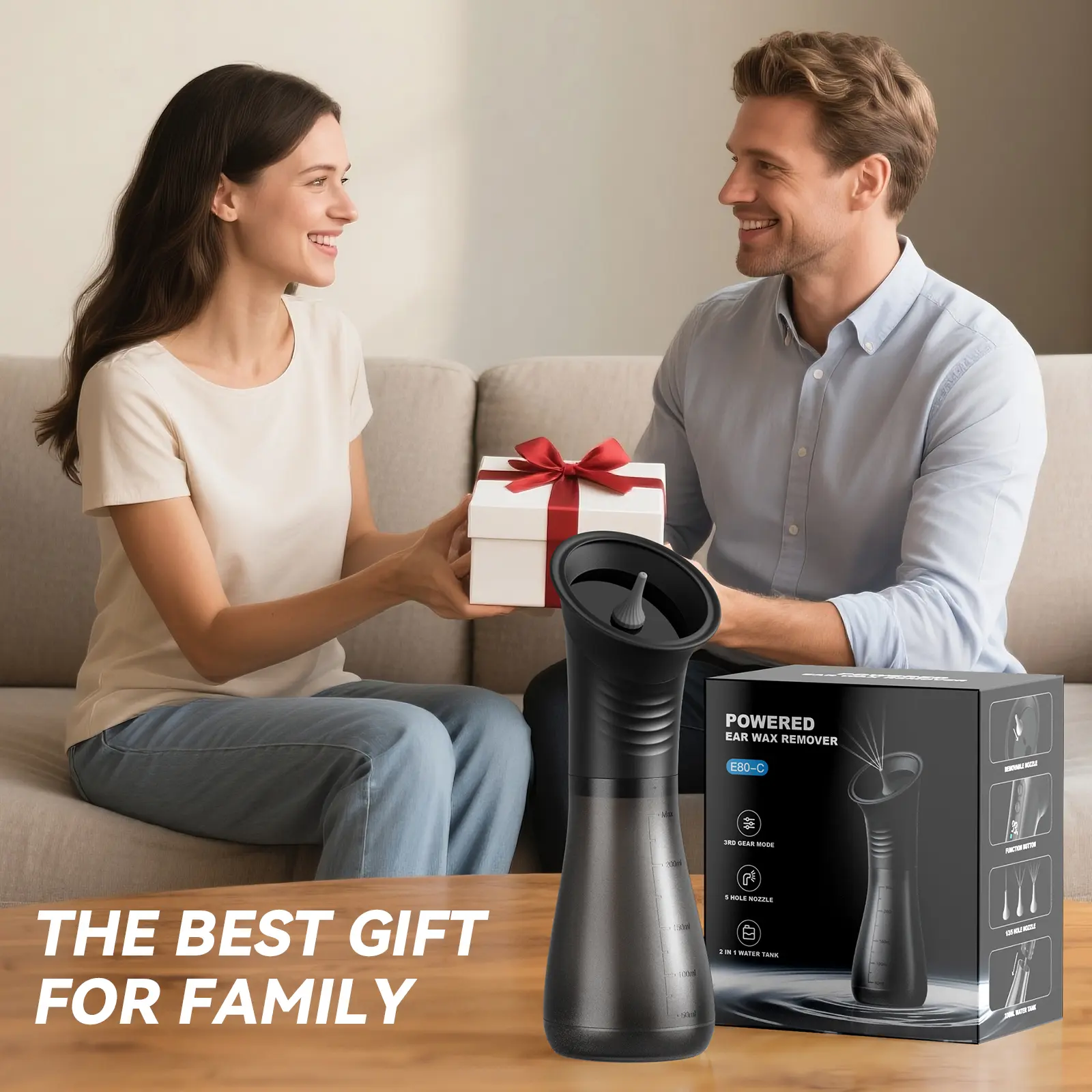 A:This device uses gentle water flow technology not high-pressure jeting) and features 3 adjustable pressure levels to suit different earwax conditions. for frst-.