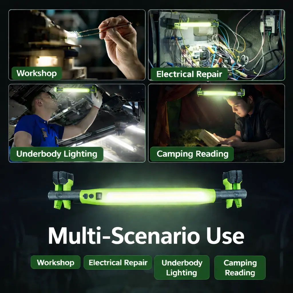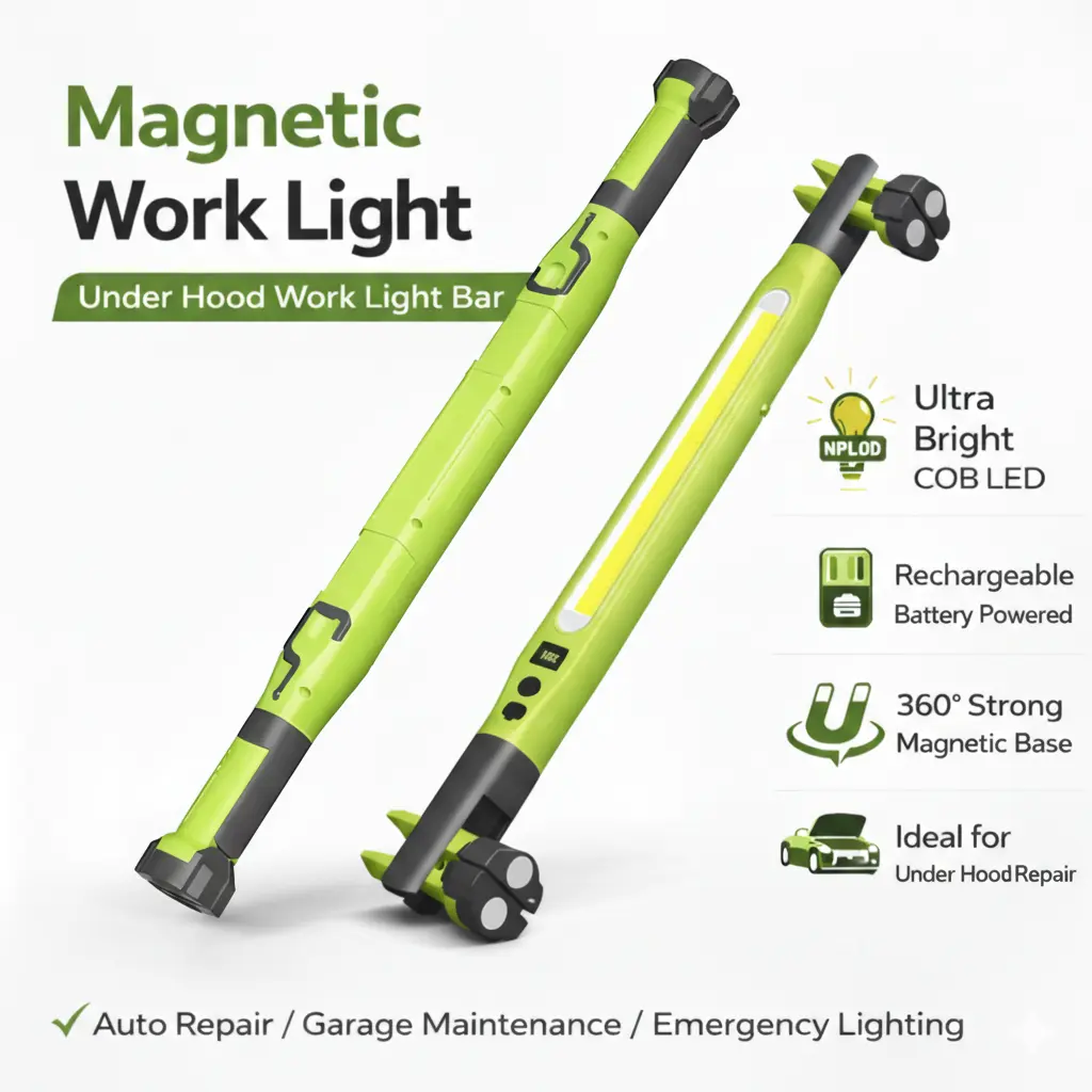 Upgrade your toolkit with the 2026 Upgraded Magnetic LED Work Light Bar. This rechargeable under hood mechanic light is perfect for car repair. It features a portable COB inspection lamp with a magnetic base and hooks. Ideal for garages, camping, and more. Stay illuminated effortlessly.