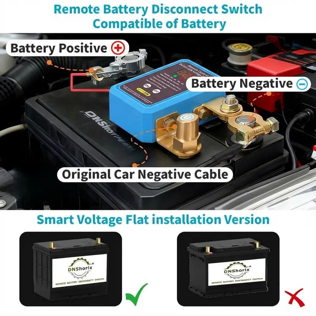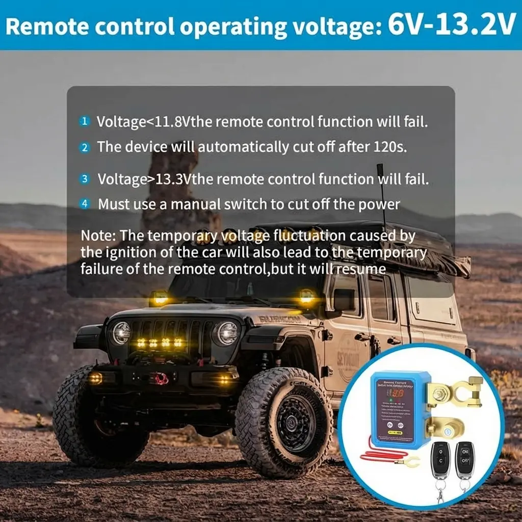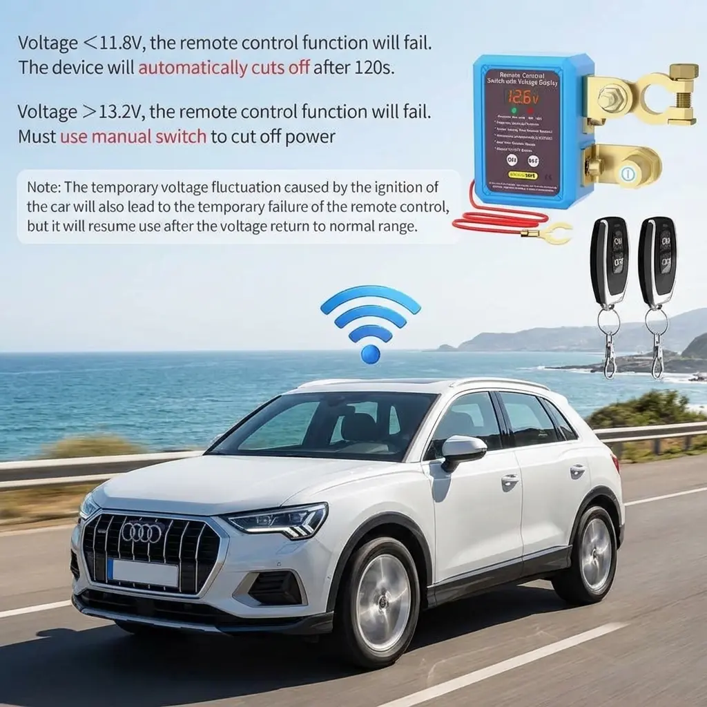 Smart Safety Logic 🚗- Prevents accidental cut-off while driving- Auto disconnects after 120 seconds if voltage stays below 11.8V- Remote function disabled above 13.3V to prevent accidental shutoff- Recommended for vehicles under 3.0T; not suggested for vehicles over 3.0T