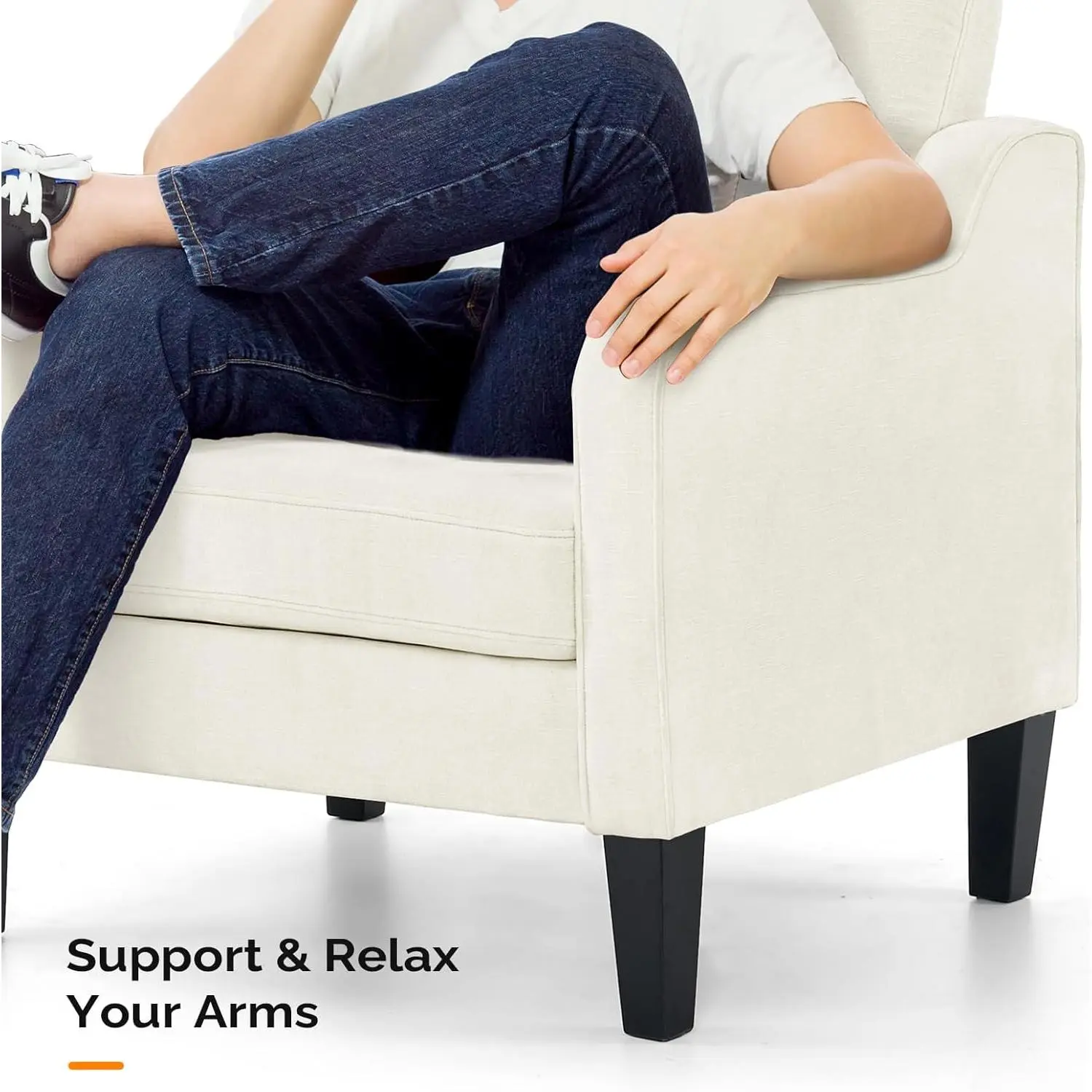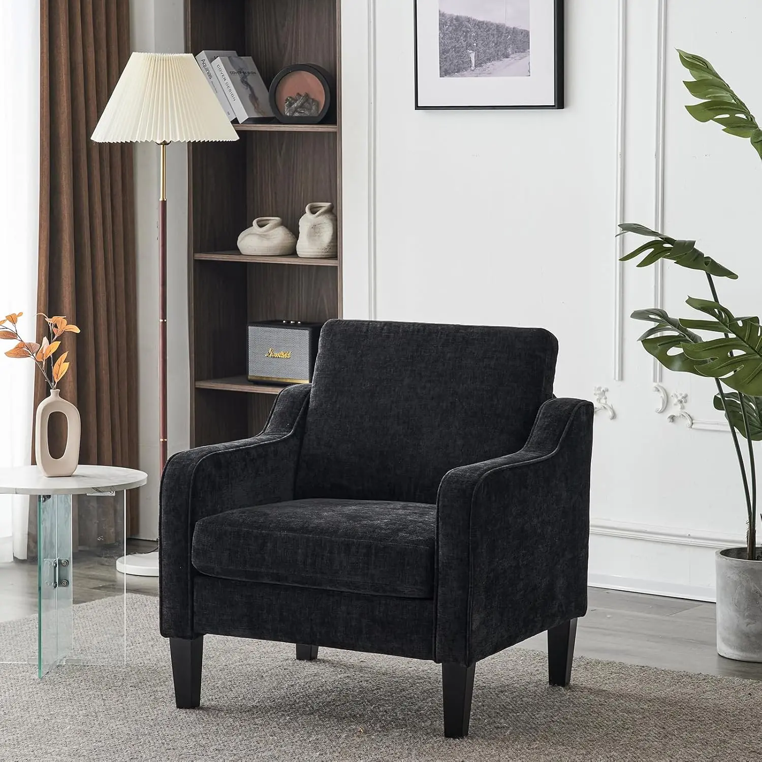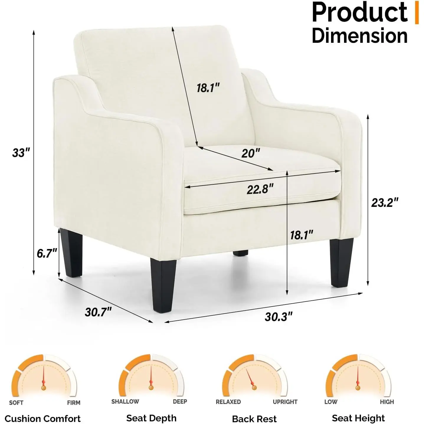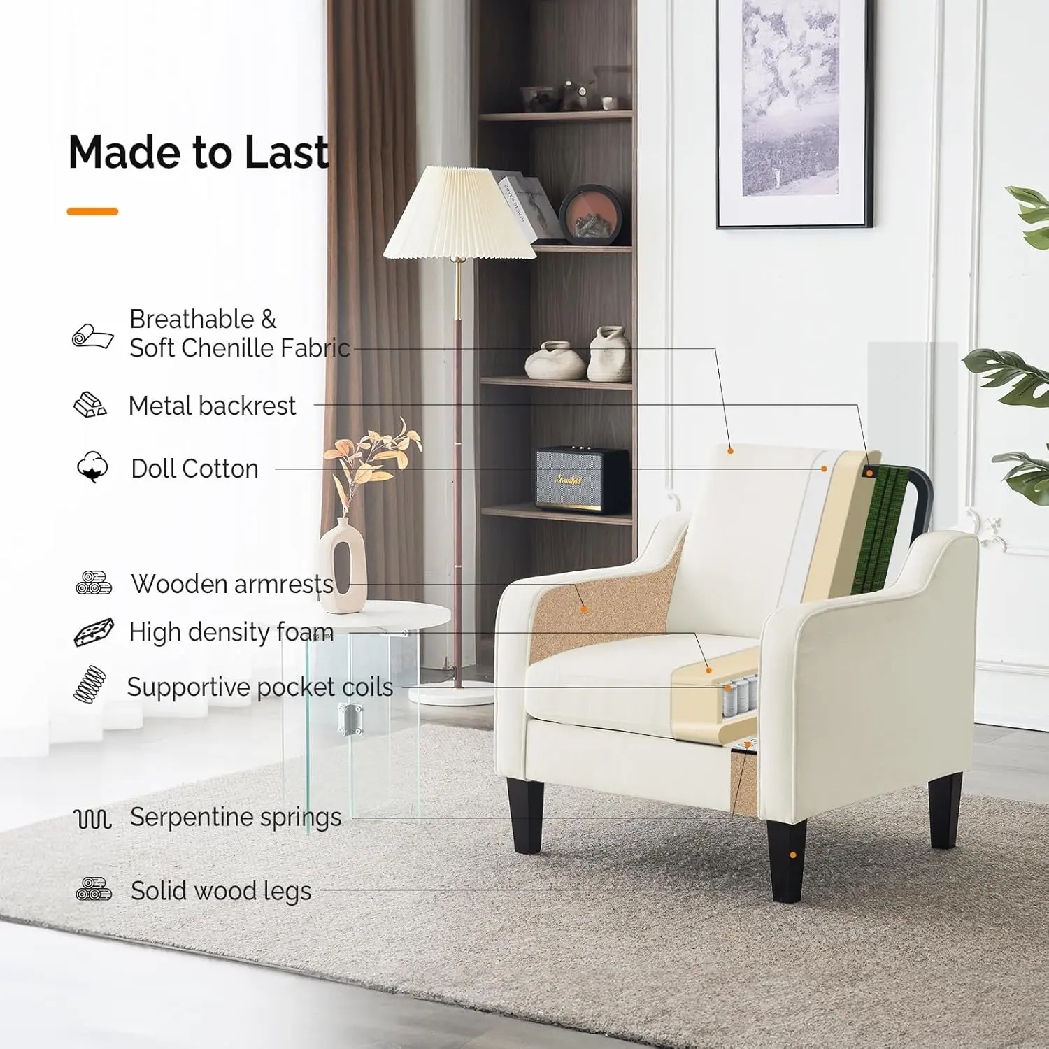 Stability and Durability—This living room chair is made with fluffy chenille fabric, resilient foam cushions with steel springs, a sturdy metal backrest, and solid wood legs. With a weight limit of 380 lbs, it ensures exceptional stability and comfort