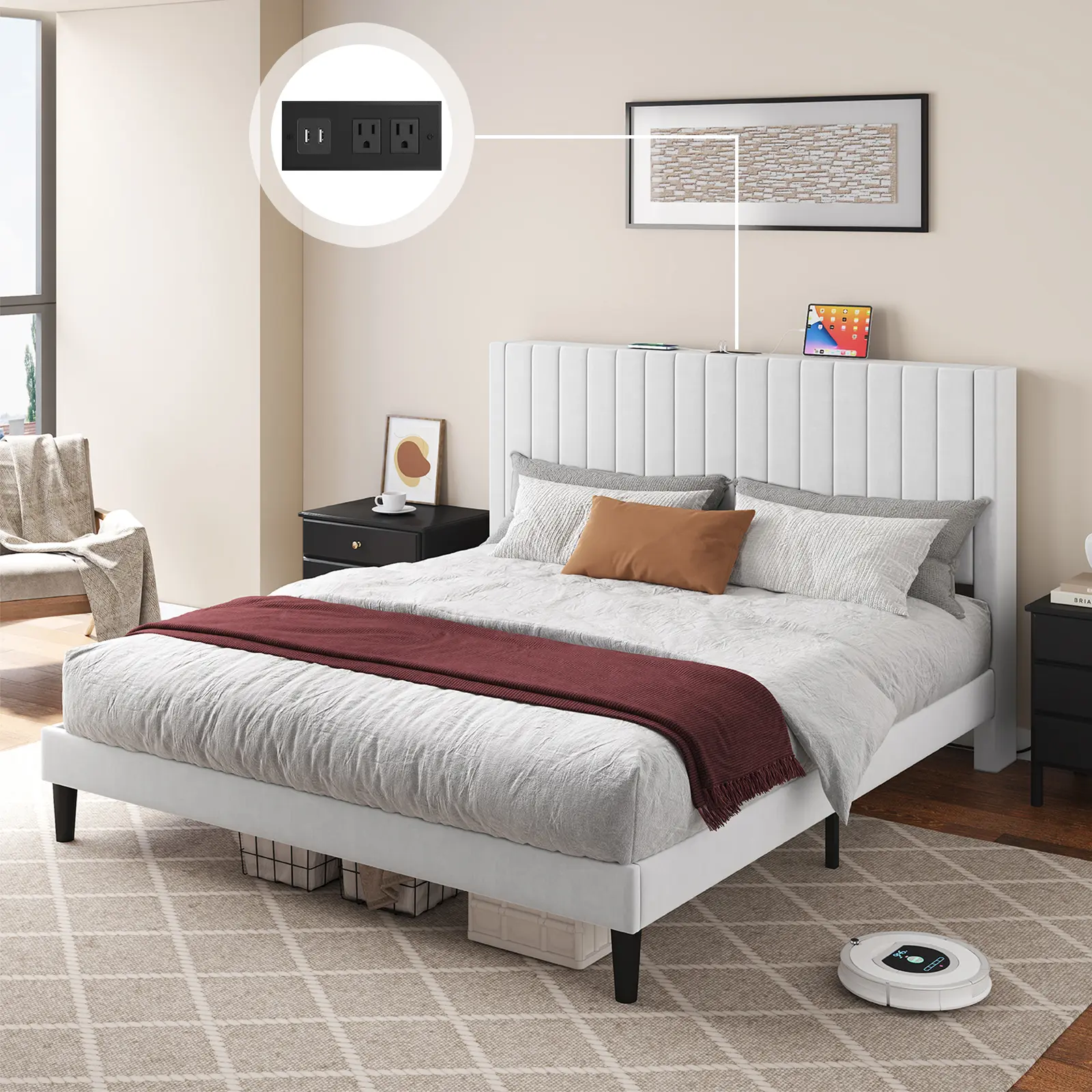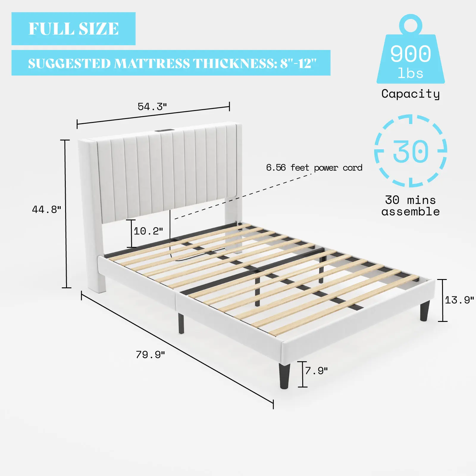 ·NO BOX SPRING NEEDED: Require no bulky box spring or extra foundation. After assembling the upholstered platform bed with headboard, just put your latex, foam or spring mattress on the wooden slats, and everything is all set.