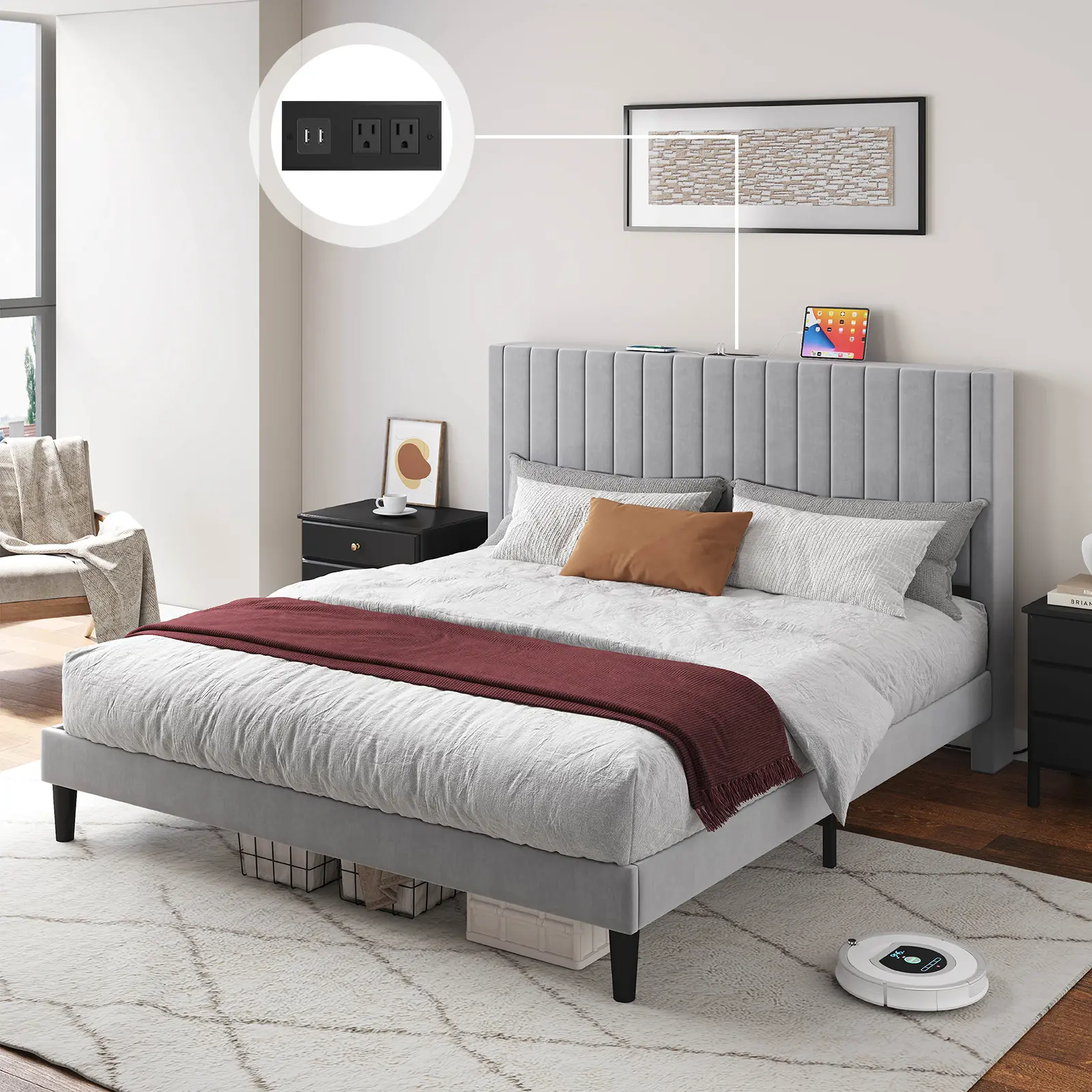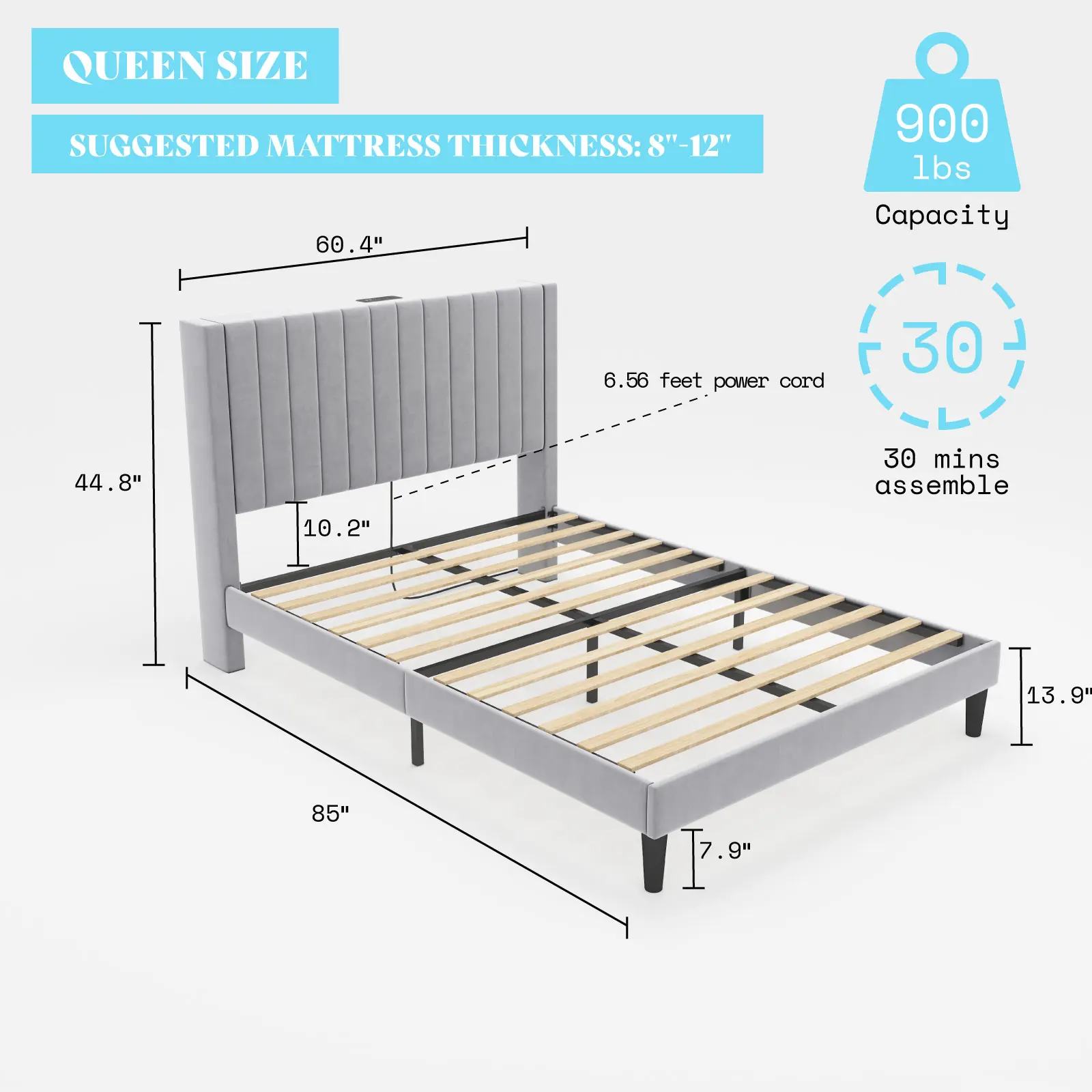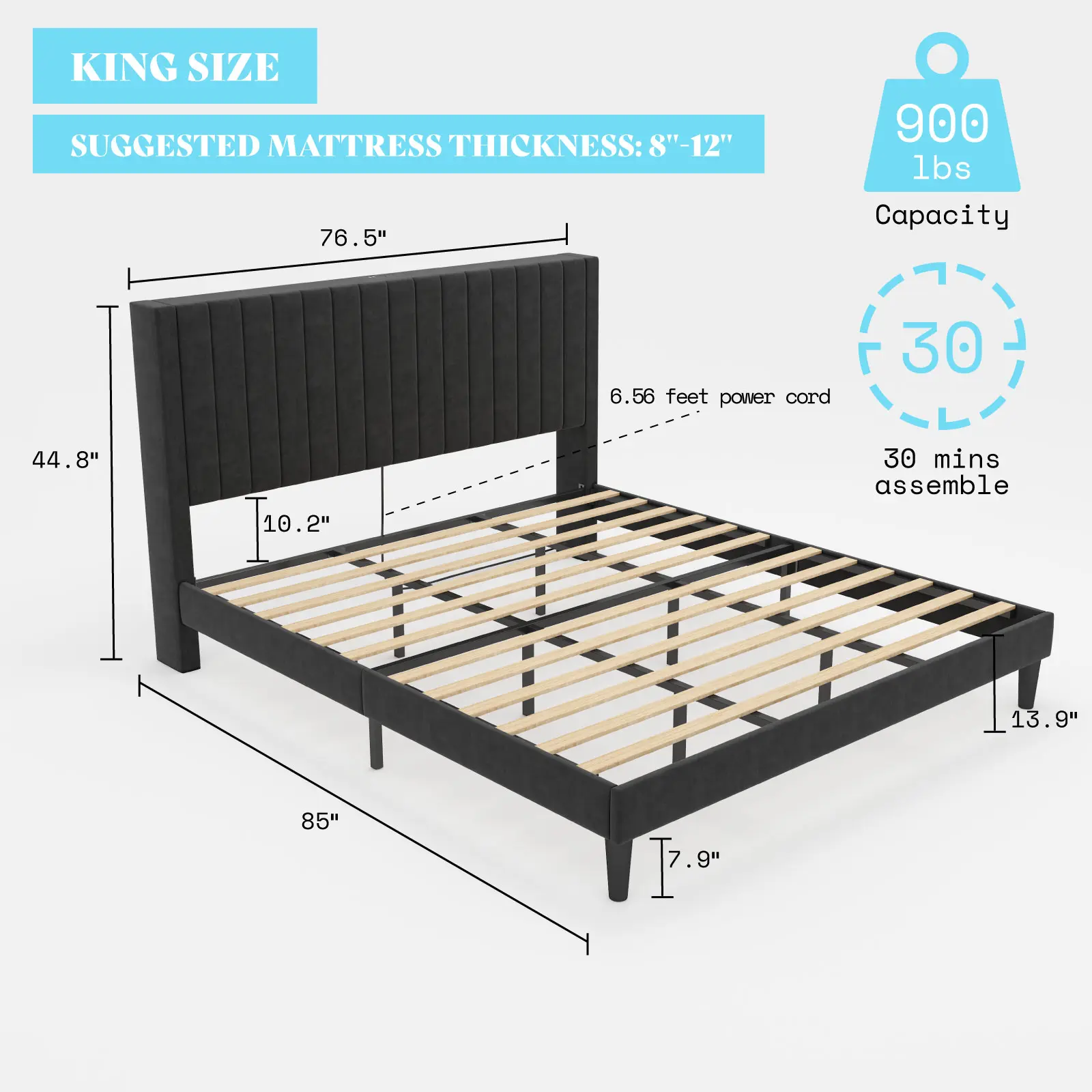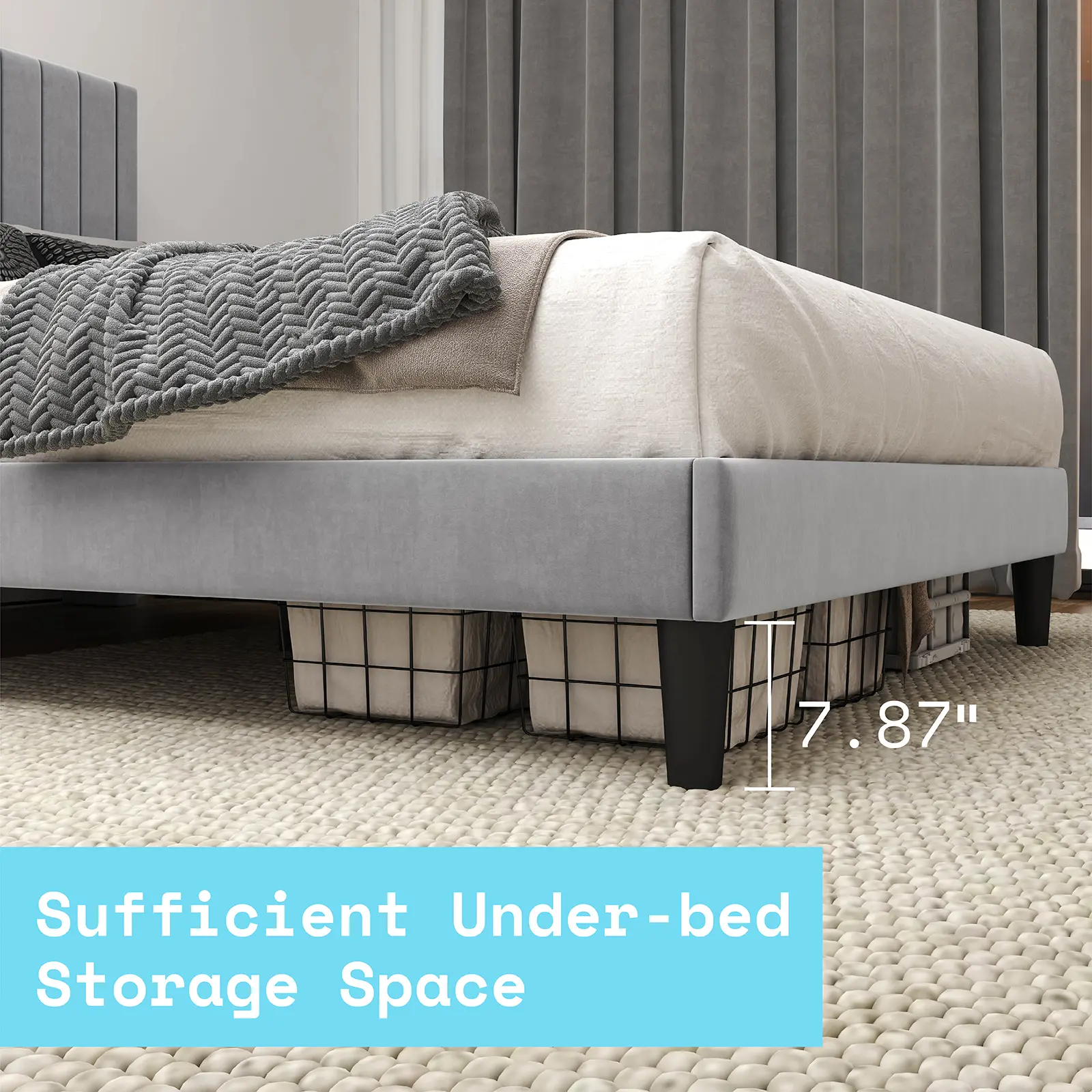 ·HIGH-QUALITY FABRIC: Vertical Channel tufted in velvet and fully padded, this bed frame will fit perfectly into your bedroom or teen's room. Skin-friendly, delicate touch!