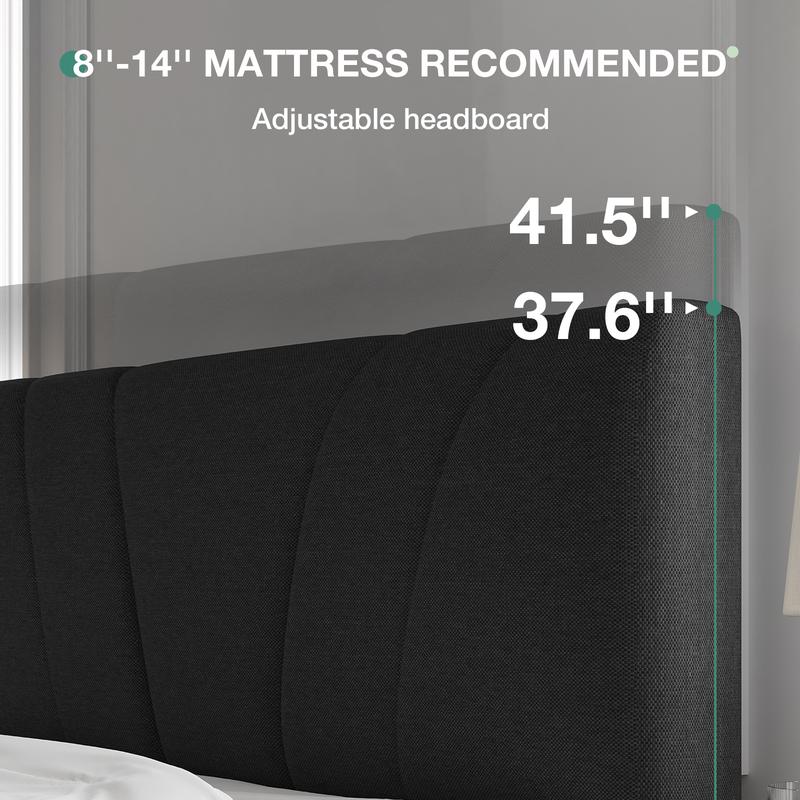 1.No Box Spring Needed: Durable wood slats are built right in to support your beloved mattress, be it latex,foam, or spring, all without the box spring. After assembling the upholstered platform bed with headboard, everything is all set 2.Sturdy Wood Construction: Interior solid wood framework and robust support feet, 12 pieces of durable wooden slats, and a dense foam-padding border increase the comfort and