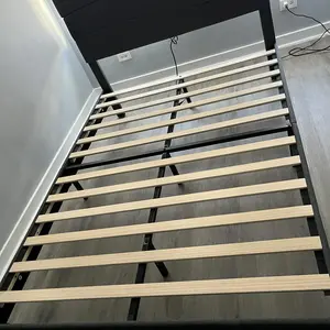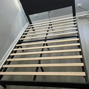 Soft bed frame with foam pads between the slats and frame ensure a squeak-free experience.