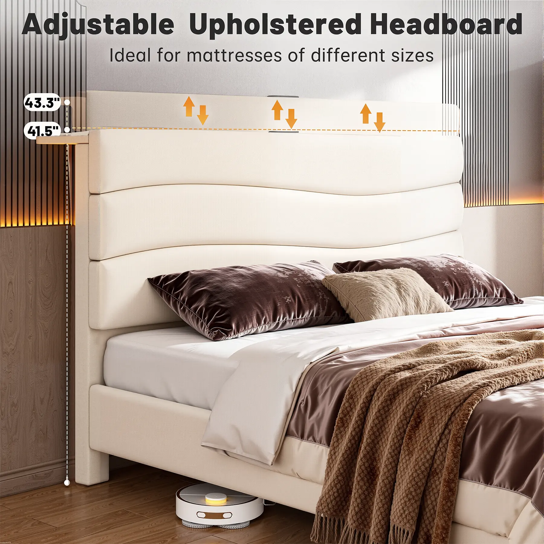 Customize your luxury bed frames with an adjustable headboard that fits mattresses between 8 to 12 inches.