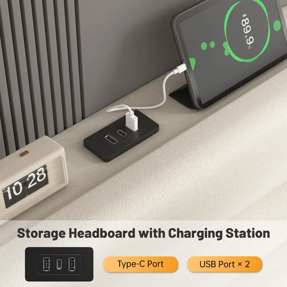 with 1 Type-C port and 2 USB ports, enjoy the convenience of charging without leaving bed.