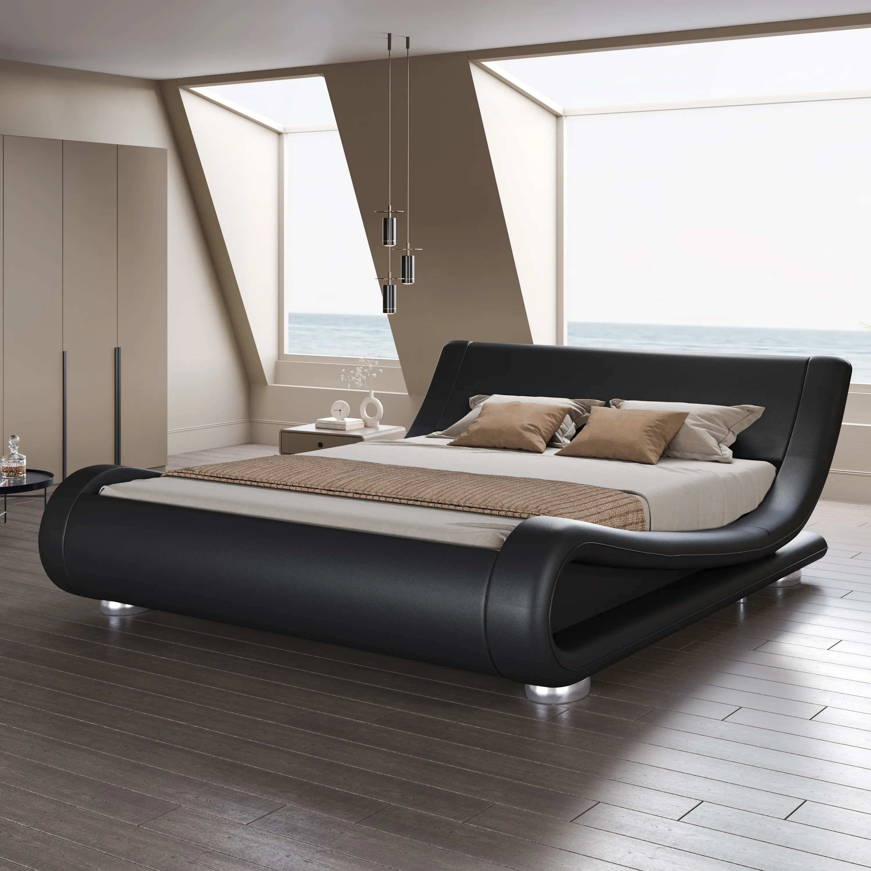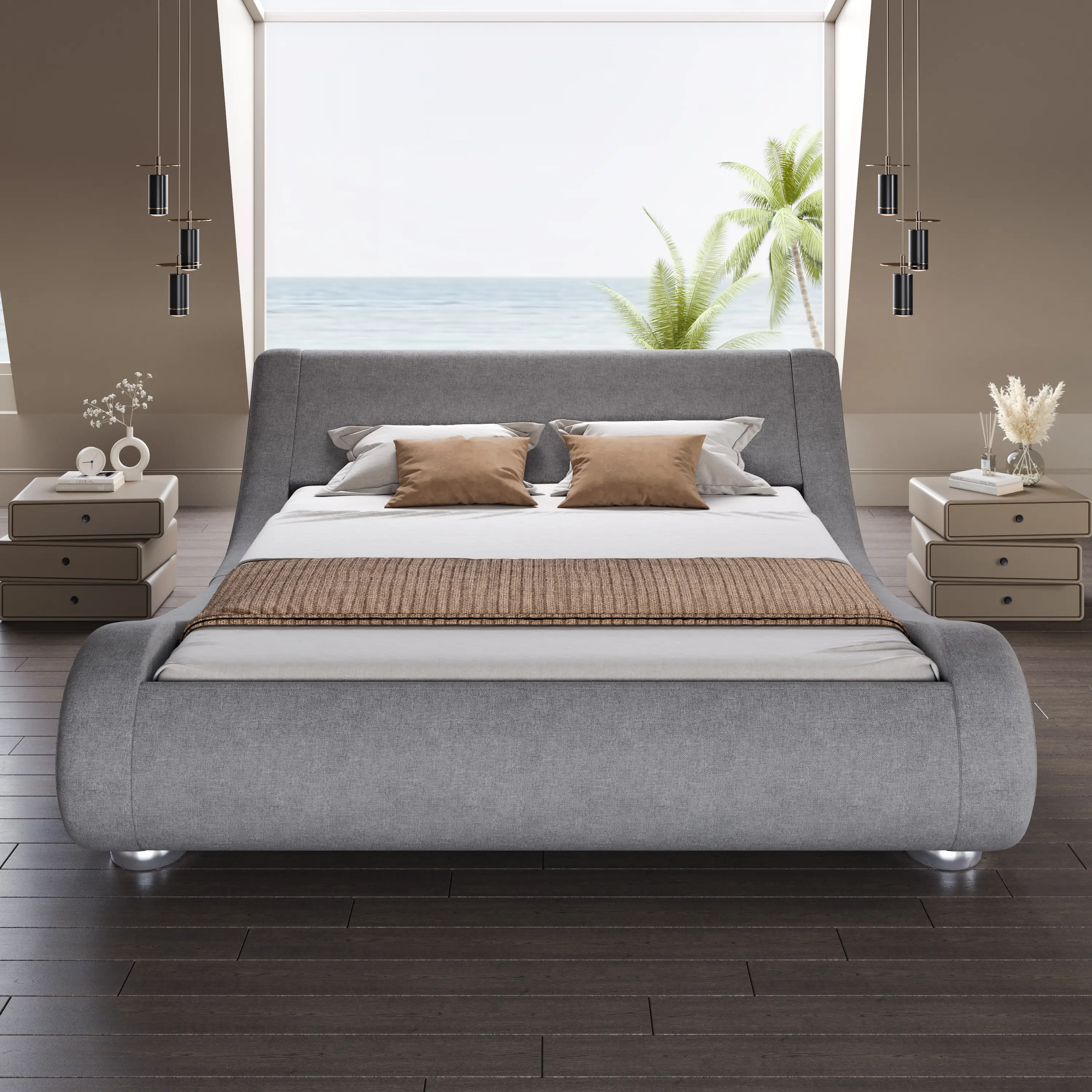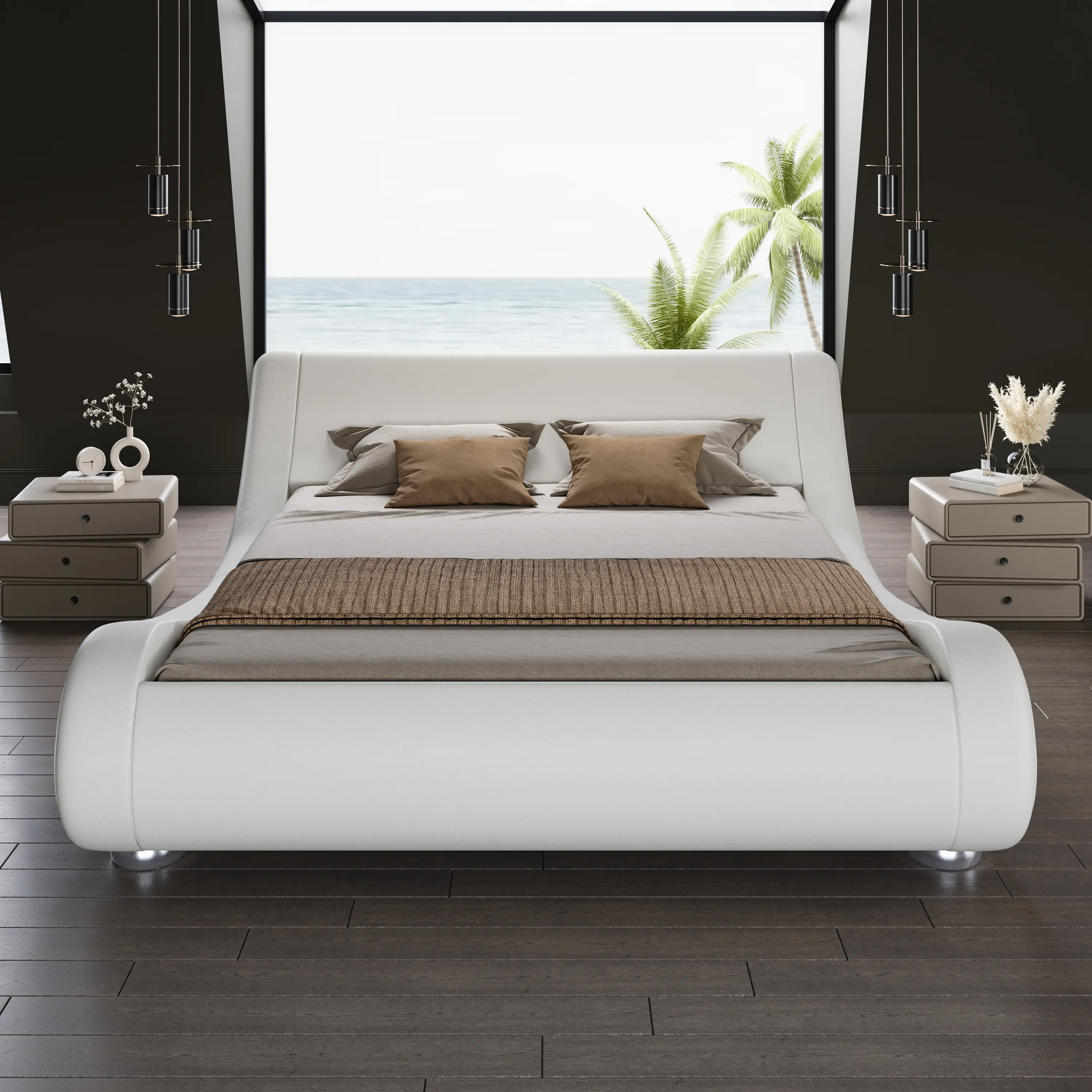 ·UNIQUE & MODERN --- The wave platform bed frame has a streamlined design along with a curved headboard which makes your room a contemporary and futuristic aesthetic.
