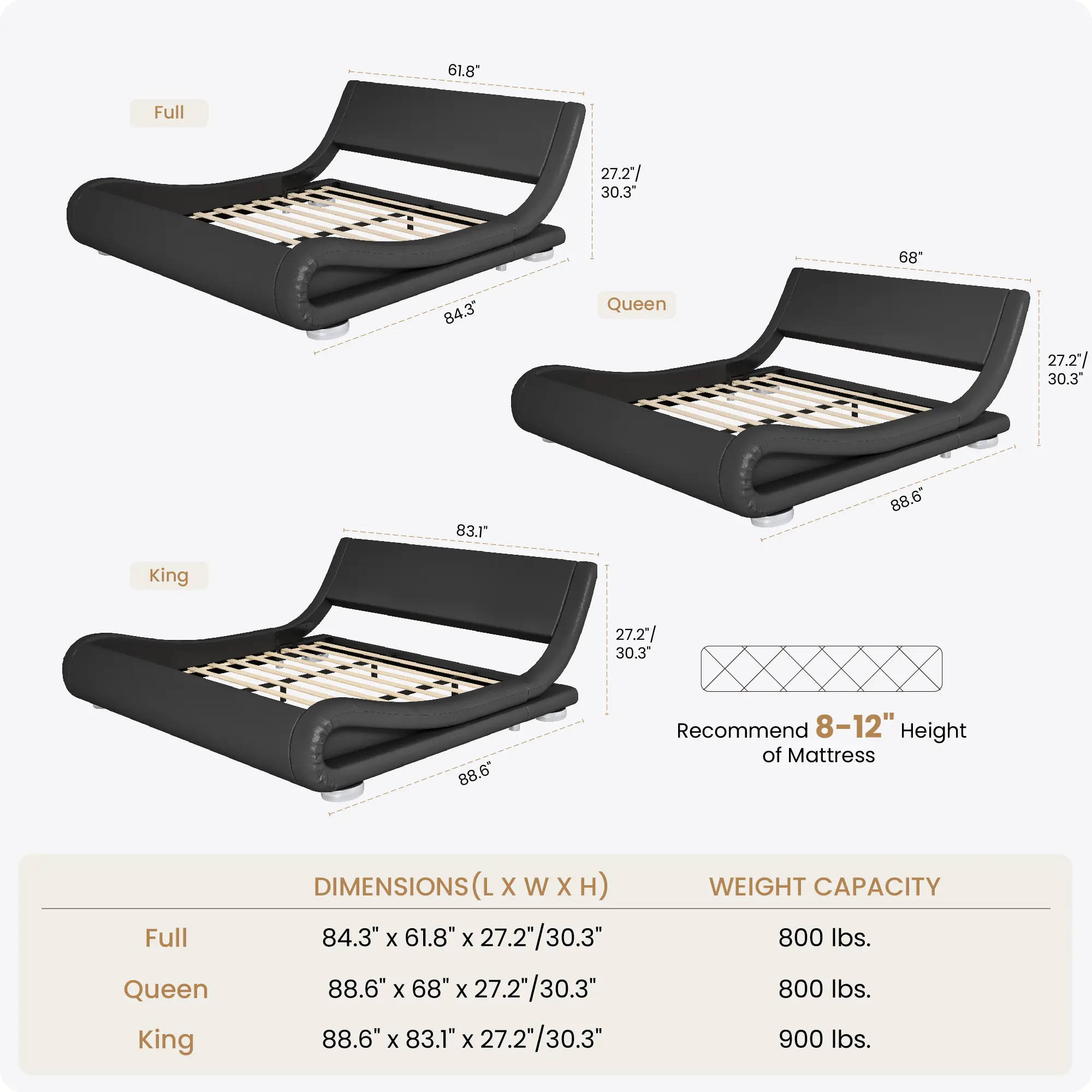 ·EMBEDDED & WELL-SLEEPING --- Fully embedded design can prevent the mattress from sliding and provide a sweet dream. Mattress + spring box is recommended not to exceed 12 inches.