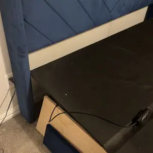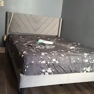 The upholstered platform bed provides comfort and security while offering a luxurious experience for today's modern families. Its velvet upholstery and soft-touch give it a boutique-like feel. Additionally, the bed features a wing side design of upholstered headboard with symmetrical geometric stitching, making it an ideal addition to any modern or glam contemporary interior. This bold and modern design is accompanied by our true wood slat support system and sturdy support legs for maximum durability and longevity. Require no bulky box spring or extra foundation. After assembling the upholstered platform bed with headboard, just put your latex, foam, or spring mattress on the wooden slats, and everything is all set.