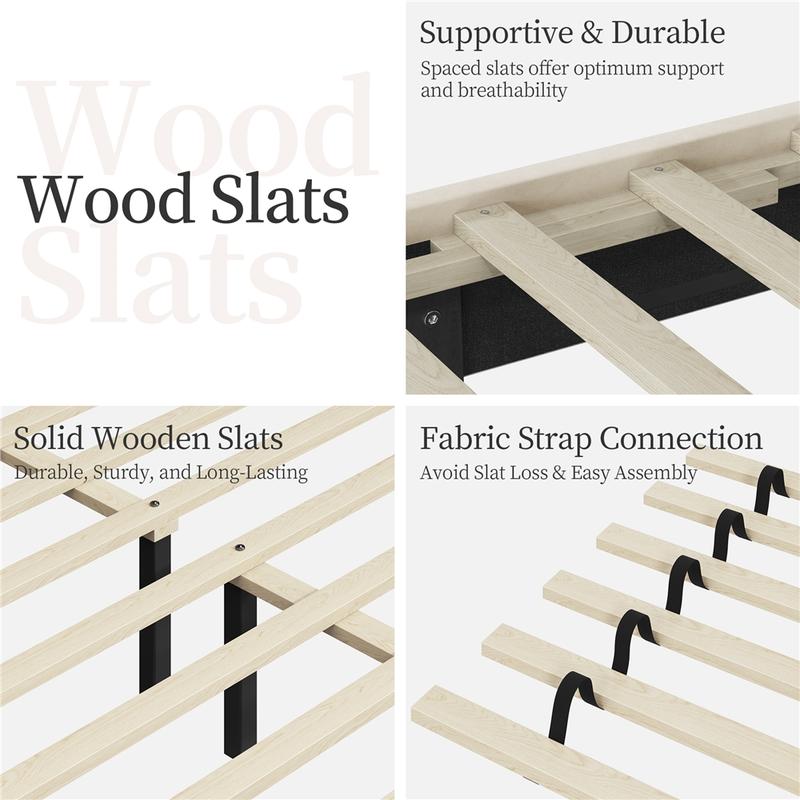 5. Sturdy Construction: With an interior wooden framework, 8 solid support legs, 12 durable slats, and a dense foam-padded border, this upholstered bed frame offers enhanced comfort and long-lasting durability, supporting up to 800 lb for a restful night's sleep