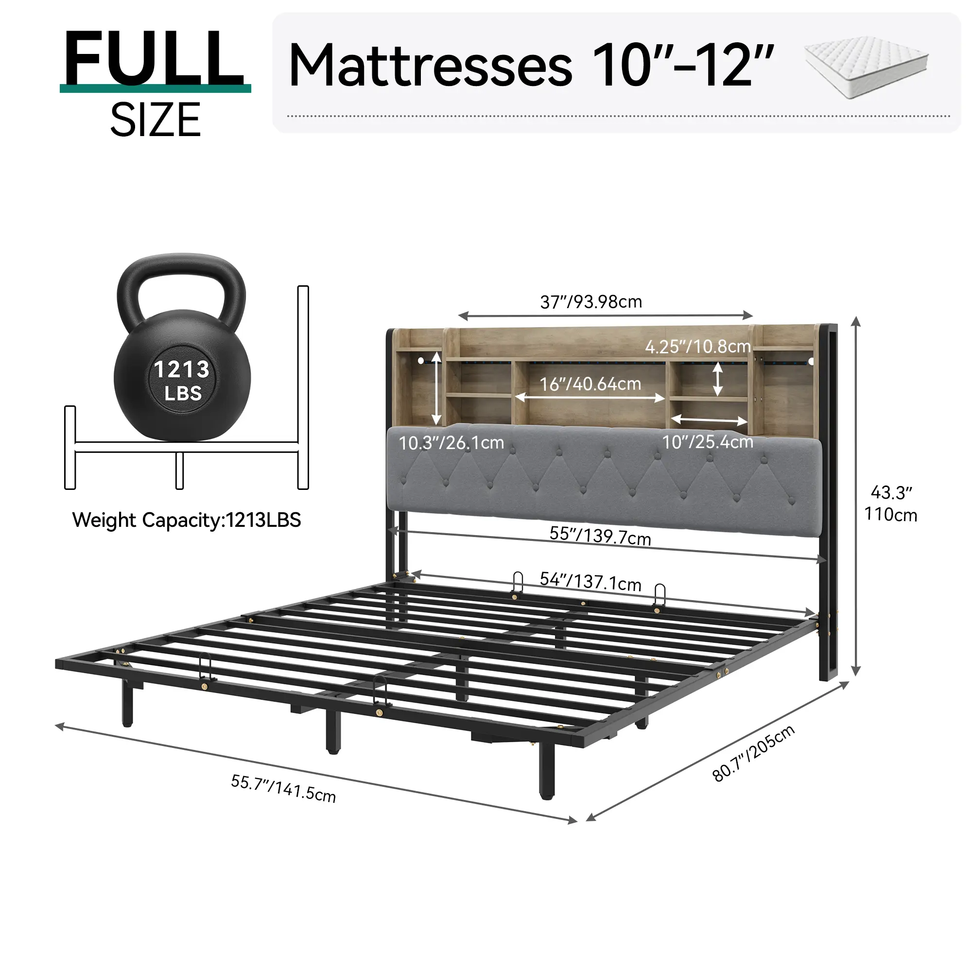 RGB LED Lights: The upholstered platform bed light grey incorporates a versatile LED lighting system that elevates the ambiance; With 7 selectable light settings and multiple display modes, users can customize the illumination to suit their personal preferences